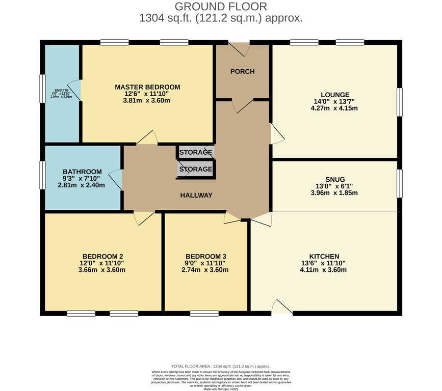 Master Bedroom 3.66m x 3.35m (12' 0" x 11' 0")