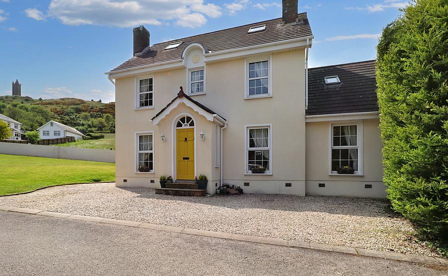 Nestled in a delightful and sought after semi-rural location this beautifully presented five-bedroom home is set over three floors and offers a wealth of versatile and flexible living accommodation whatever your family needs. Located in the foothills of the iconic landmark of Scrabo Tower the property offers the best worlds both with a country feel but within minutes of the bustling market town of Newtownards with its wide selection of coffee houses, restaurants, shops and retail parks as well as being within close proximity to many popular schools and major transport routes to Belfast and Bangor. Set in a quiet cul de sac on a prime corner site with views of the surrounding countryside, the property comprises of entrance porch, welcoming family room/snug with feature open fireplace, second reception/office, extensive open plan lounge with feature open fireplace leading through to dining area and kitchen, large sunroom overlooking the sunny rear gardens and Scrabo Tower, utility room and downstairs WC. On the first floor are three spacious and bright double bedrooms, master with ensuite and separate family bathroom and on the second floor are a two further two bedrooms, the largest with ensuite. Outside the property has a ample driveway to front and to the rear are sunny private enclosed gardens with paved sun terrace overlooking the surrounding countrysidea perfect little haven to sit and unwind.