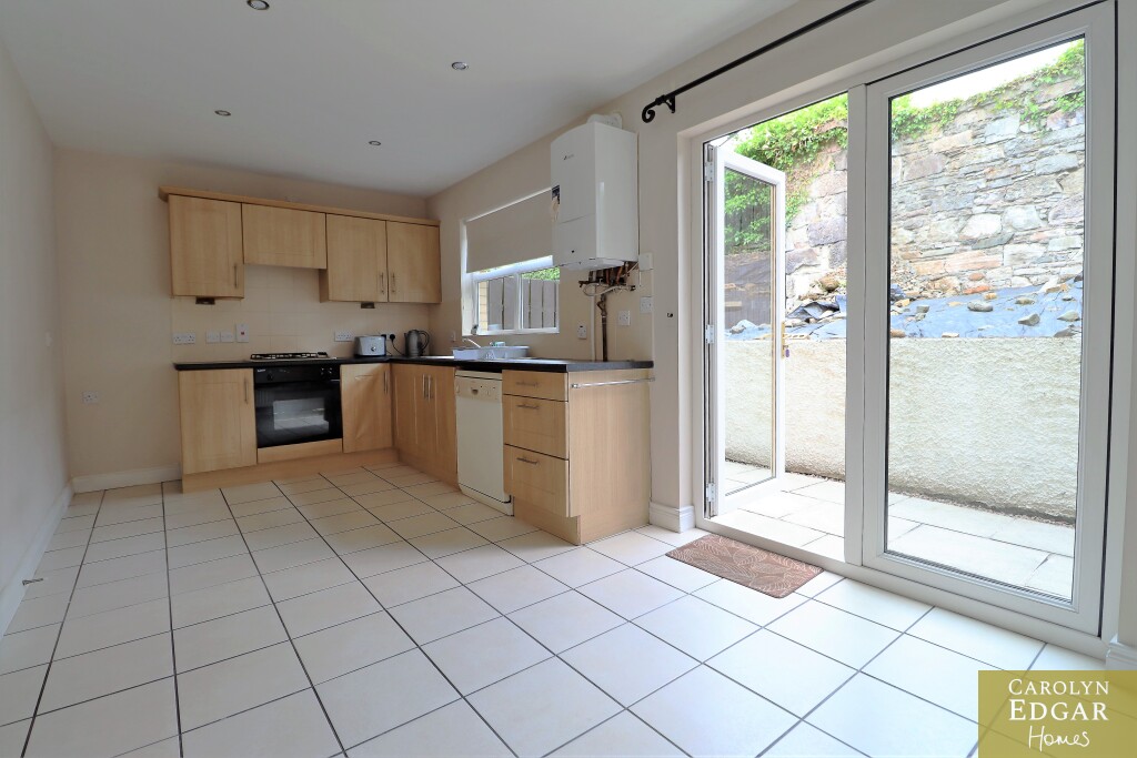 Open Plan Kitchen with Casual Dining Area and French Doors to Rear Gardens