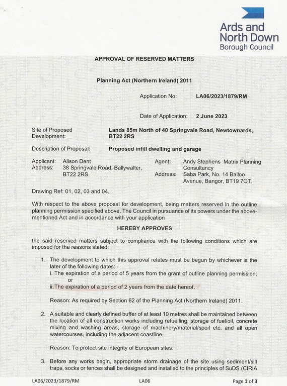 Planning Application LA/2023/1879/RM(granted 2 years from June 2023)