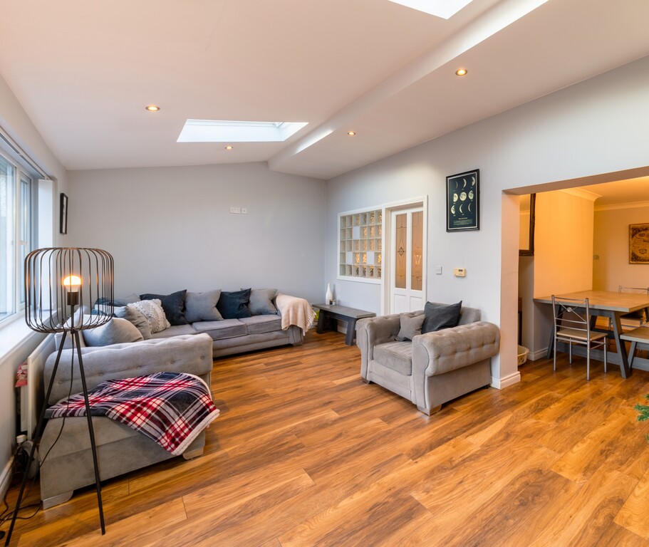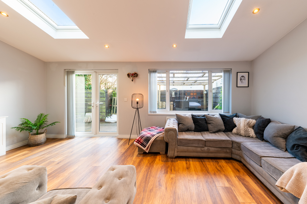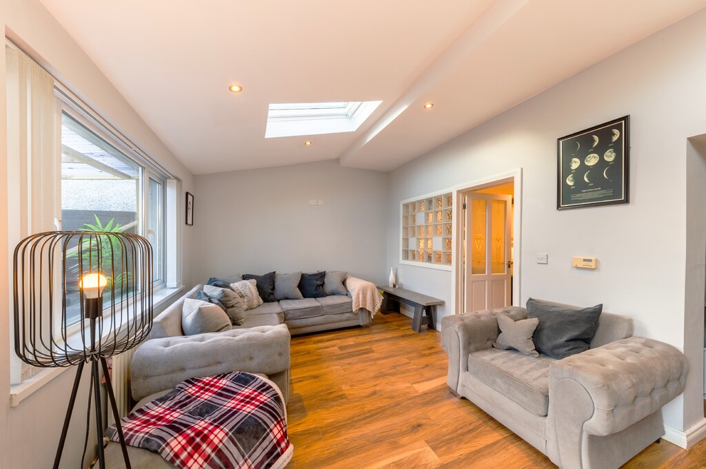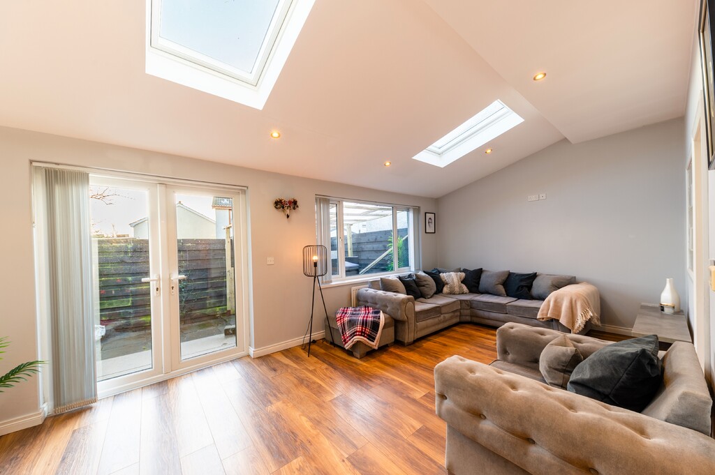 This perfectly presented and extended end-of-terrace house offers a wealth of spacious and well-maintained living accommodation and is a fantastic opportunity for first-time buyers, families, or those looking for a property that can offer a work from home opportunity as it has already been set up as a beauty salon but can easily be change to suit any business or home office. Located just minutes' drive to the bustling town centre of Newtownards with its great array of coffee houses, restaurants, shops, shopping centre and local amenities is the perfect area for those looking to be in a quiet but central location and with nearby local schools makes it an ideal choice for families with school-going children. Internally the property comprises of large open plan contemporary lounge with dining area and feature vaulted ceilings flooding the room with natural light and French doors out the paved rear gardens, modern fitted kitchen with an ample range of built in units and appliances and family bathroom. Upstairs are three well-presented bedrooms, two of which are doubles. Externally the property has low maintenance paved gardens to the rear with covered decked sun terrace and driveway to the side with access to home office.