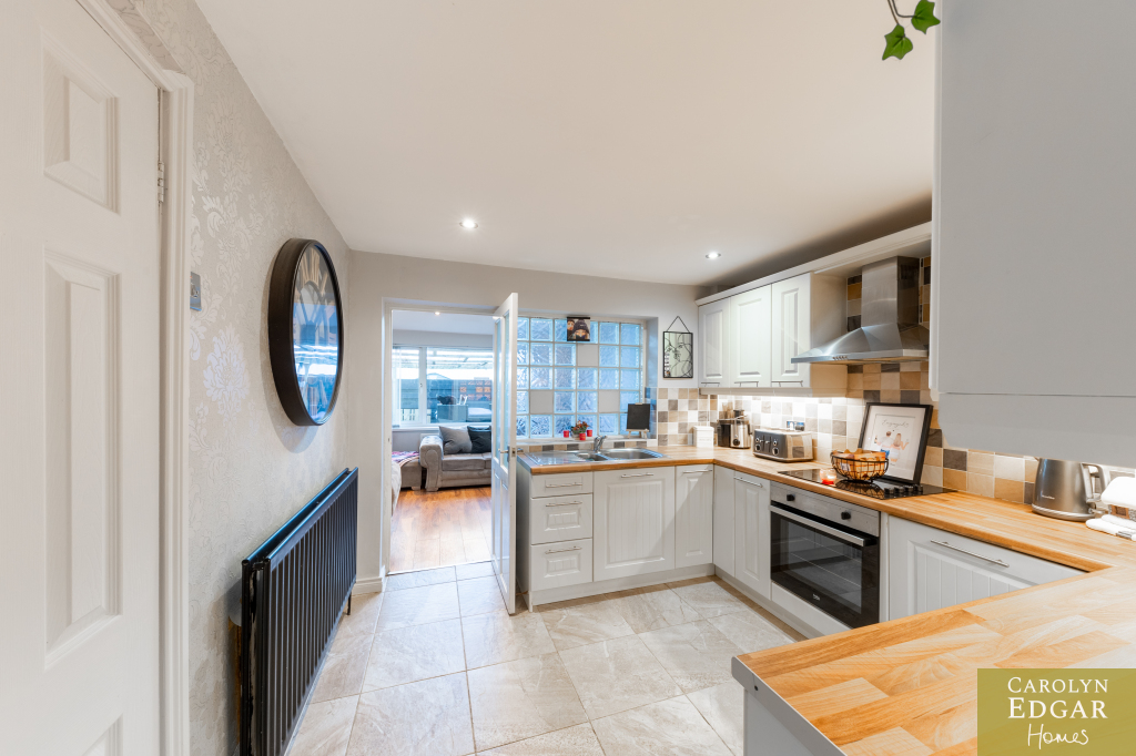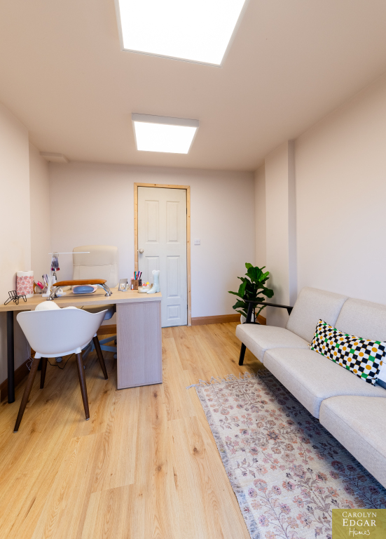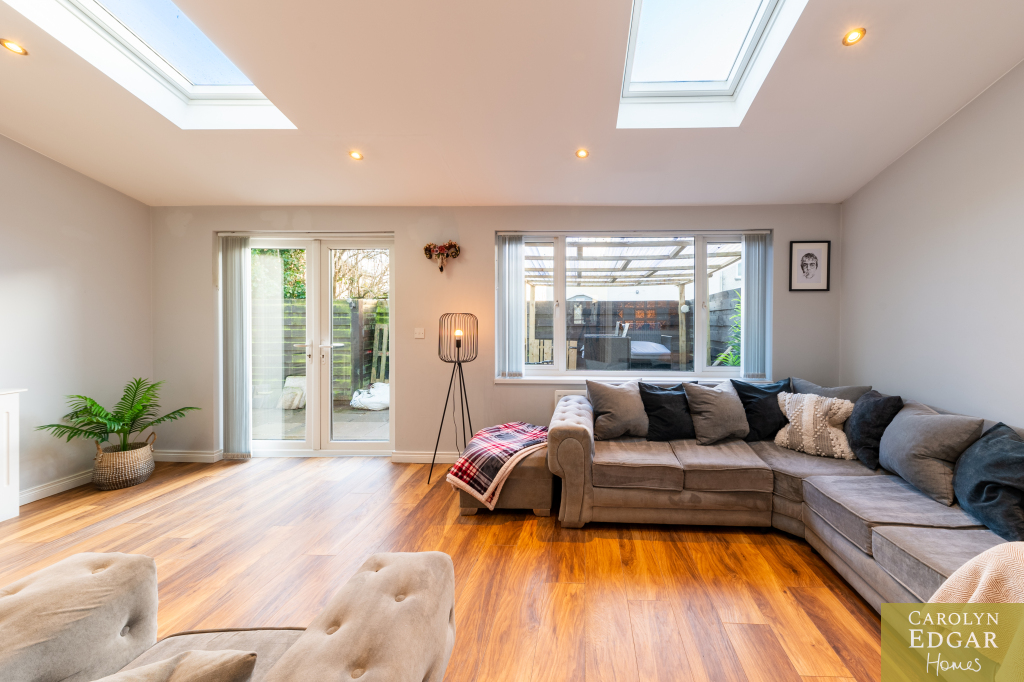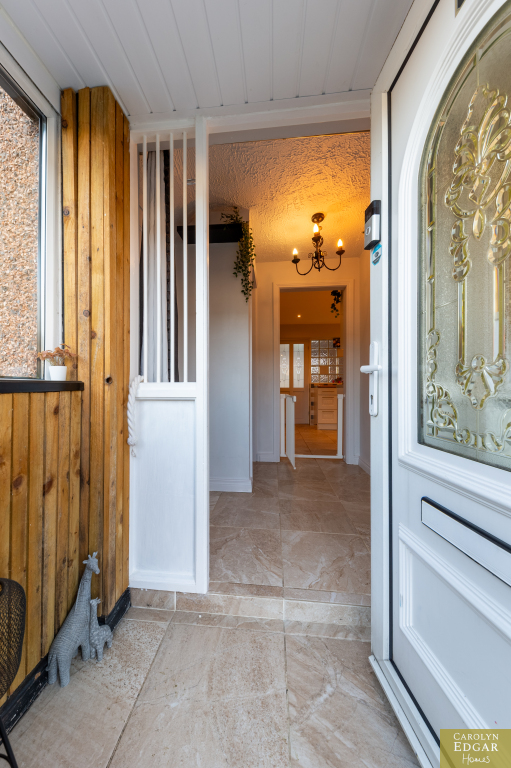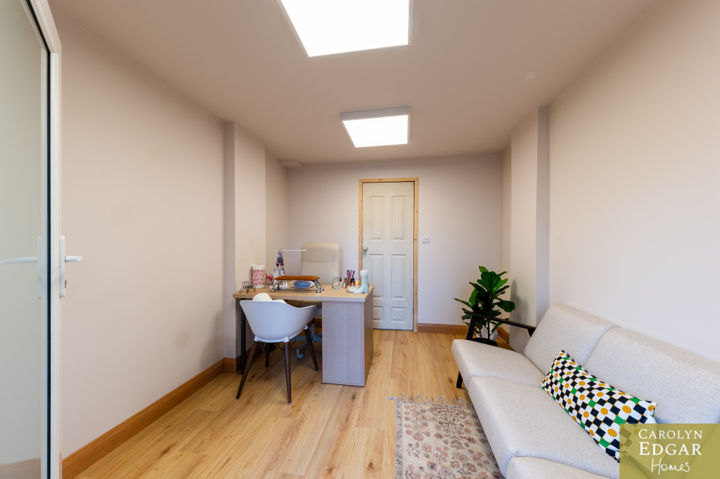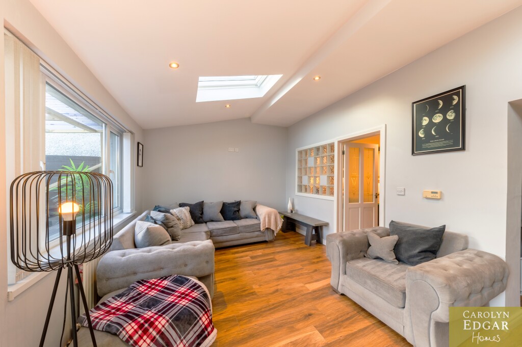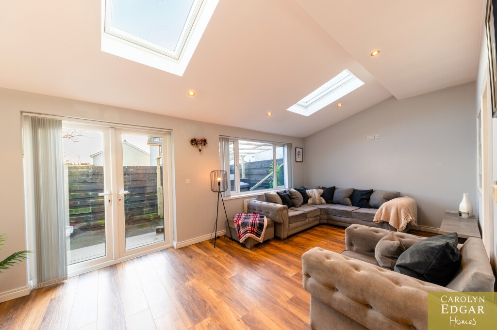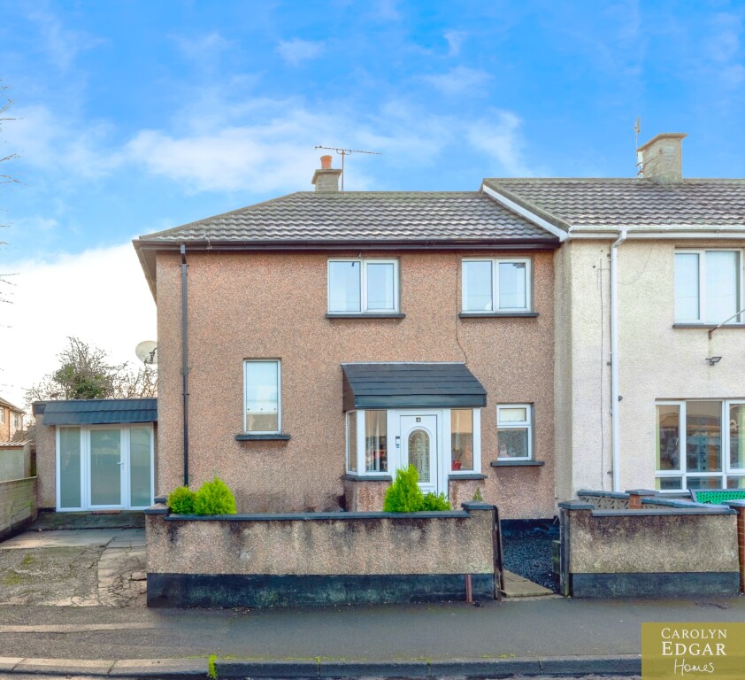This perfectly presented and extended end-of-terrace house offers a wealth of spacious and well-maintained living accommodation and is a fantastic opportunity for first-time buyers, families, or those looking for a property that can offer a work from home opportunity as it has already been set up as a beauty salon but can easily be change to suit any business or home office. Located just minutes' drive to the bustling town centre of Newtownards with its great array of coffee houses, restaurants, shops, shopping centre and local amenities is the perfect area for those looking to be in a quiet but central location and with nearby local schools makes it an ideal choice for families with school-going children. Internally the property comprises of large open plan contemporary lounge with dining area and feature vaulted ceilings flooding the room with natural light and French doors out the paved rear gardens, modern fitted kitchen with an ample range of built in units and appliances and family bathroom. Upstairs are three well-presented bedrooms, two of which are doubles. Externally the property has low maintenance paved gardens to the rear with covered decked sun terrace and driveway to the side with access to home office.
