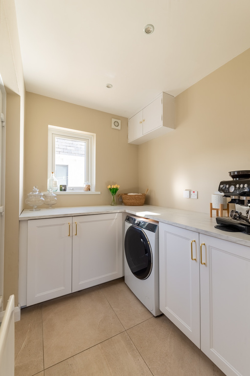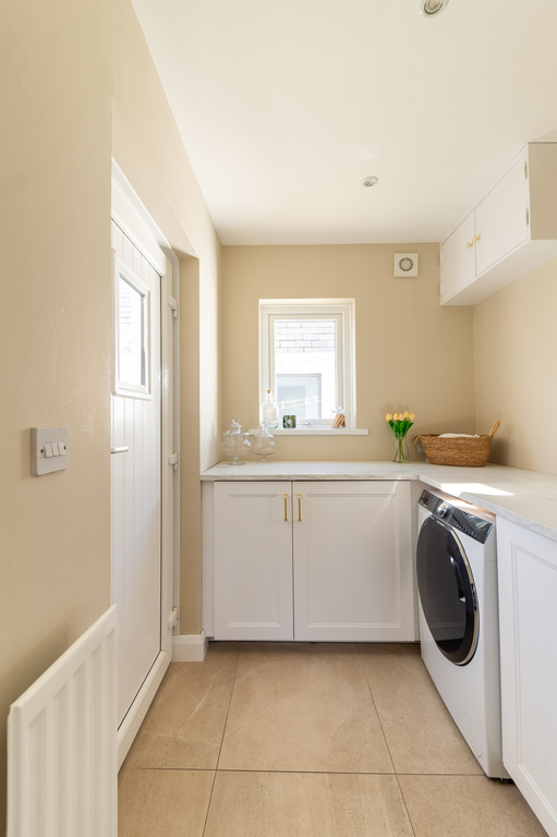 Internally, the property comprises of bright and welcoming entrance hallway, spacious luxury fitted kitchen with a centre island, and sleek built-in appliances open to a bright and comfortable lounge with patio doors opening to the sunny private gardens, creating a natural connection between indoor and outdoor living. Additionally, are three well portioned bedrooms, two of which benefit from built-in wardrobes, together with a modern family bathroom finished to an excellent standard and utility room.