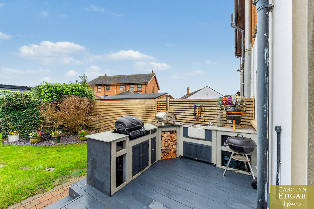 Externally, the property enjoys private front gardens with mature hedging, while the driveway to the side provides off-street parking for several vehicles. To the rear are private, sunny gardens, thoughtfully designed with a delightful mix of seating areas, a summer house and sun terraceideal for following the sun throughout the day from morning coffee to sun downersand making the most of this exceptional outdoor space