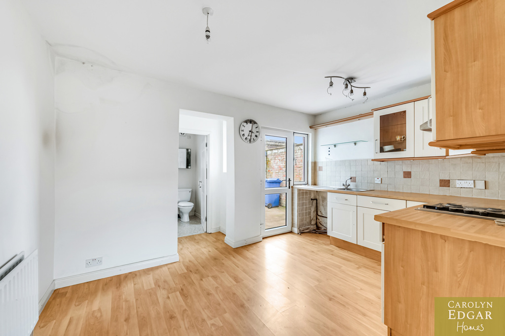 Open Plan Kitchen and Dining Area. uPVC double glazed window. Laminate wood flooring.