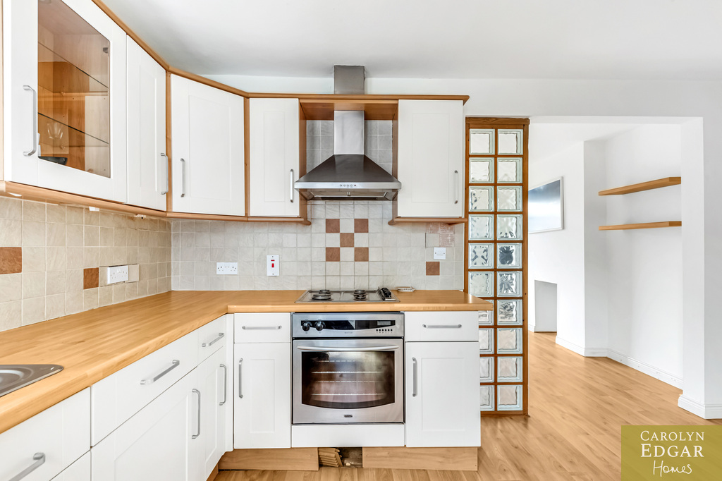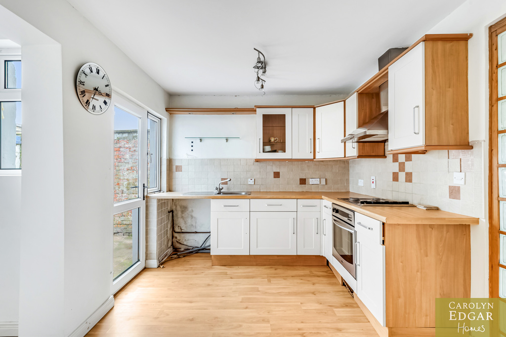 Range of high & low level units. Stainless steel sink unit with side drainer & mixer tap. Built in oven, Gas hob with stainless steel extractor canopy over. Plumbed for washing machine. uPVC double glazed window & uPVC double glazed external door. Laminate wood flooring.