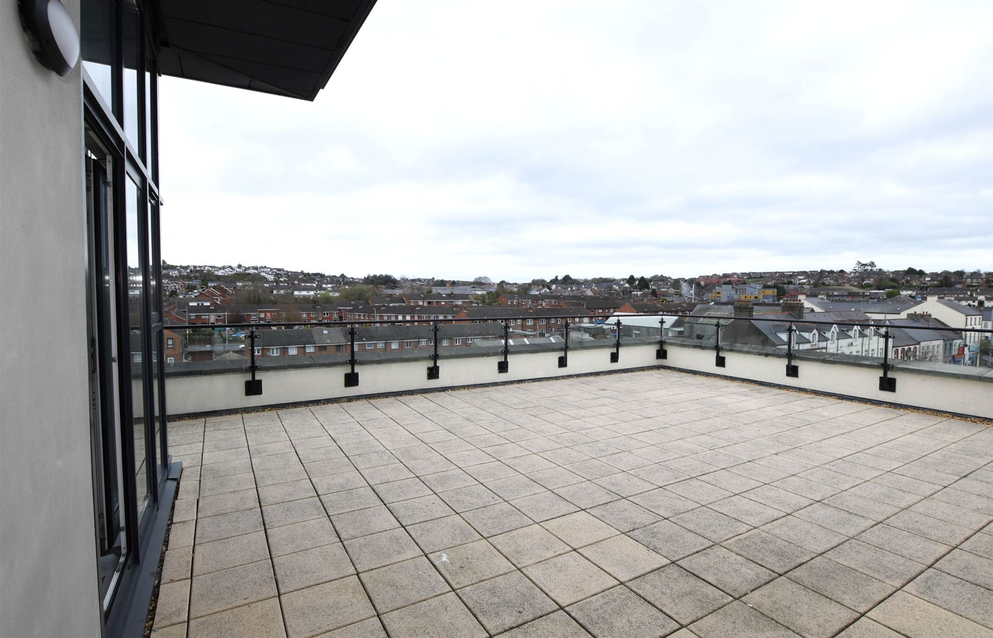 Large balcony area with paved patio area.