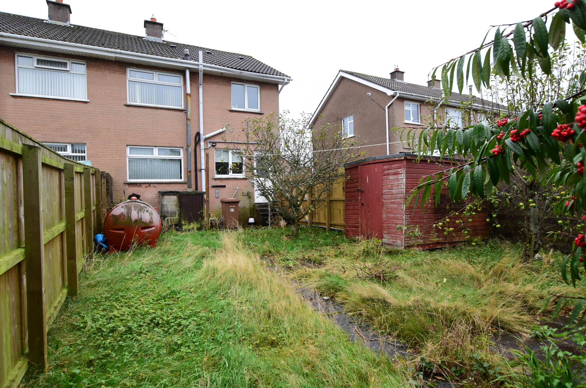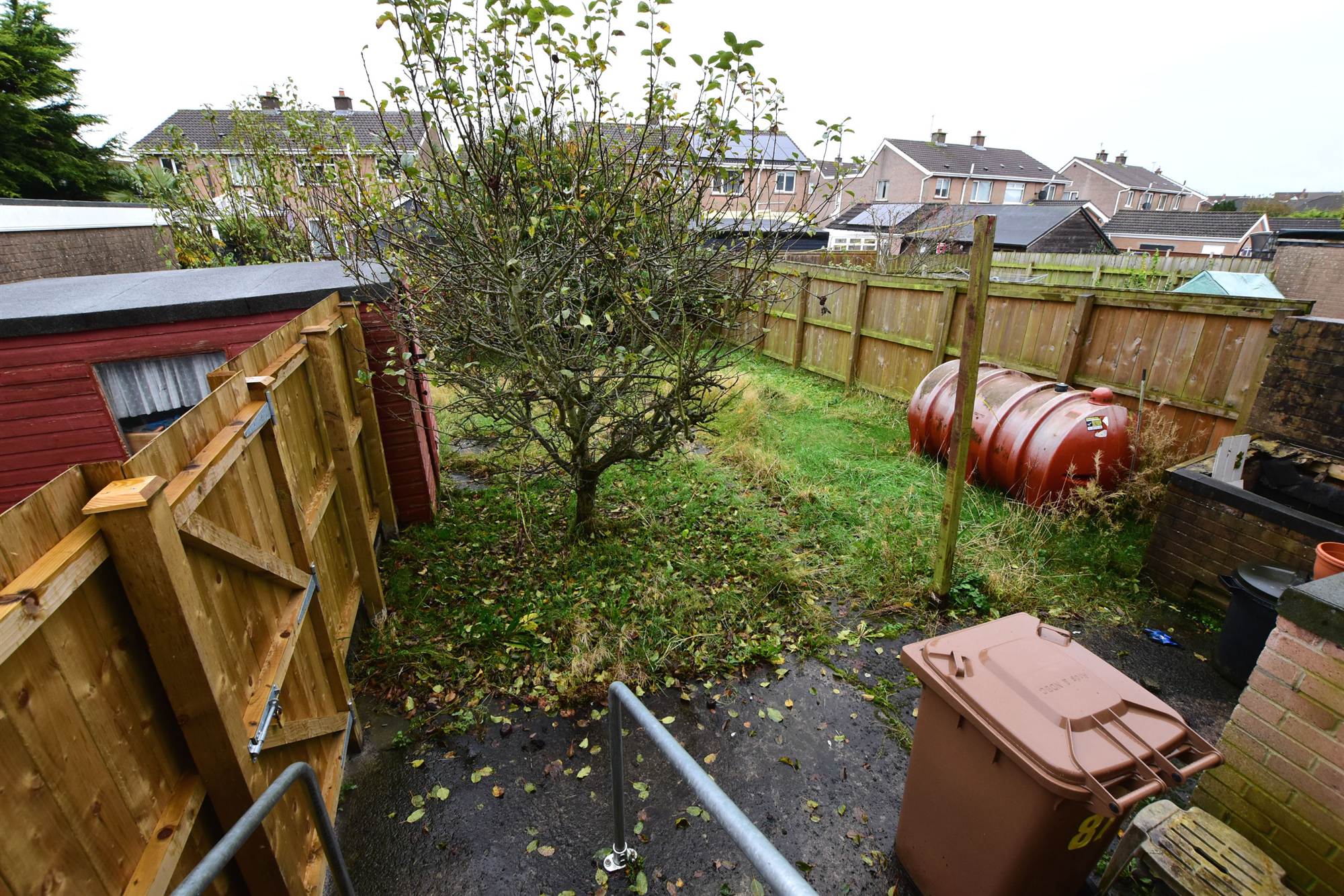 Gardens shed, boiler house, oil fired boiler, outside light, outside water tap, oil storage tank.