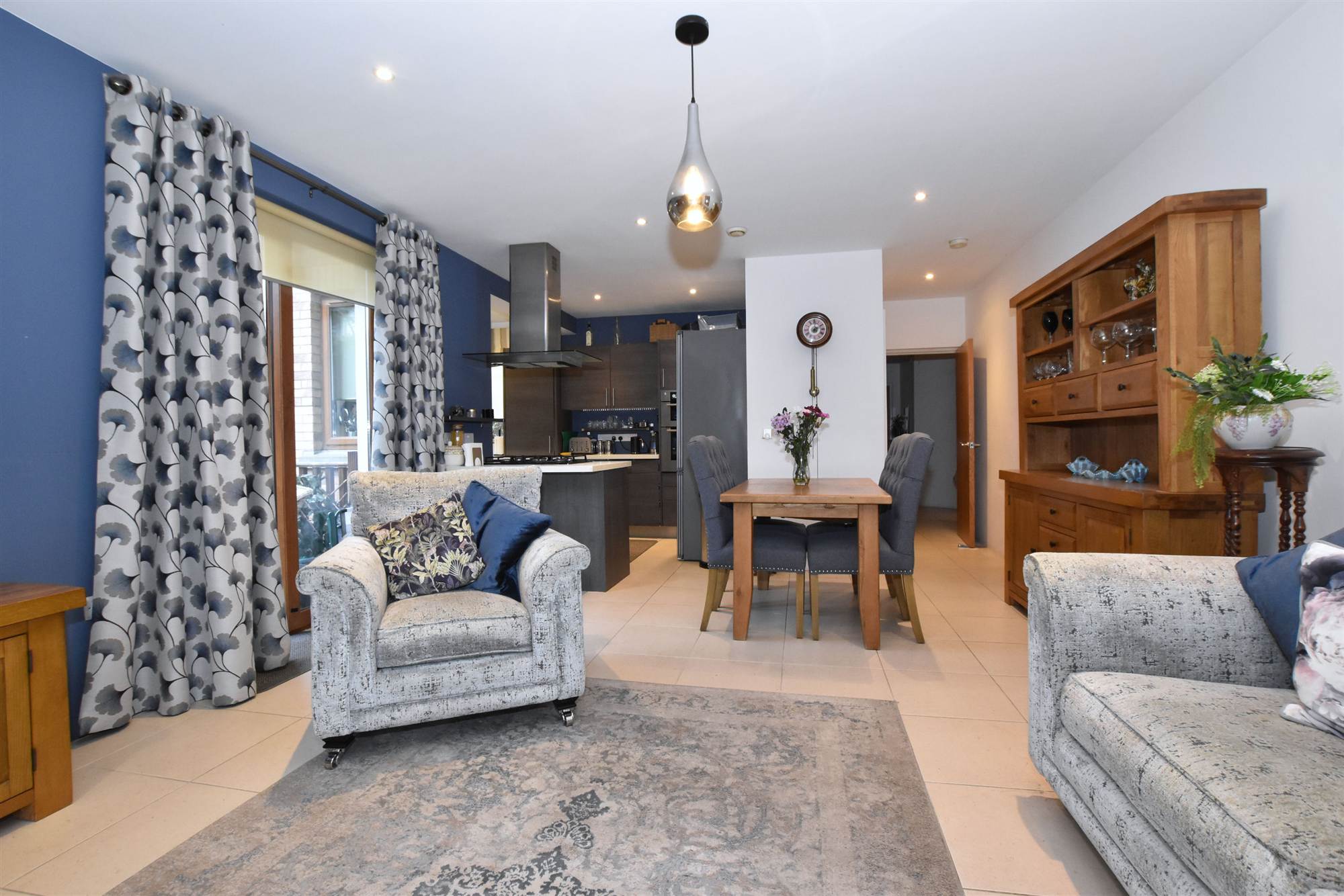 Ceramic tiled floor, recessed spotlighting, Upvc double glazed sliding patio door to timber deck area, open plan to:..