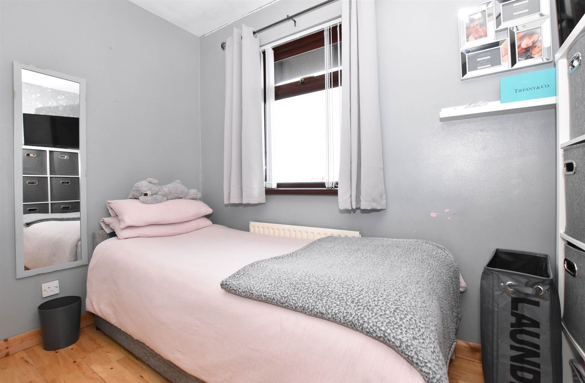 Polished laminate floor, built-in robe.