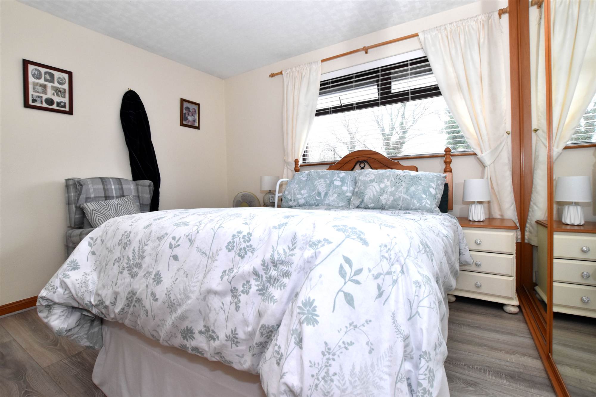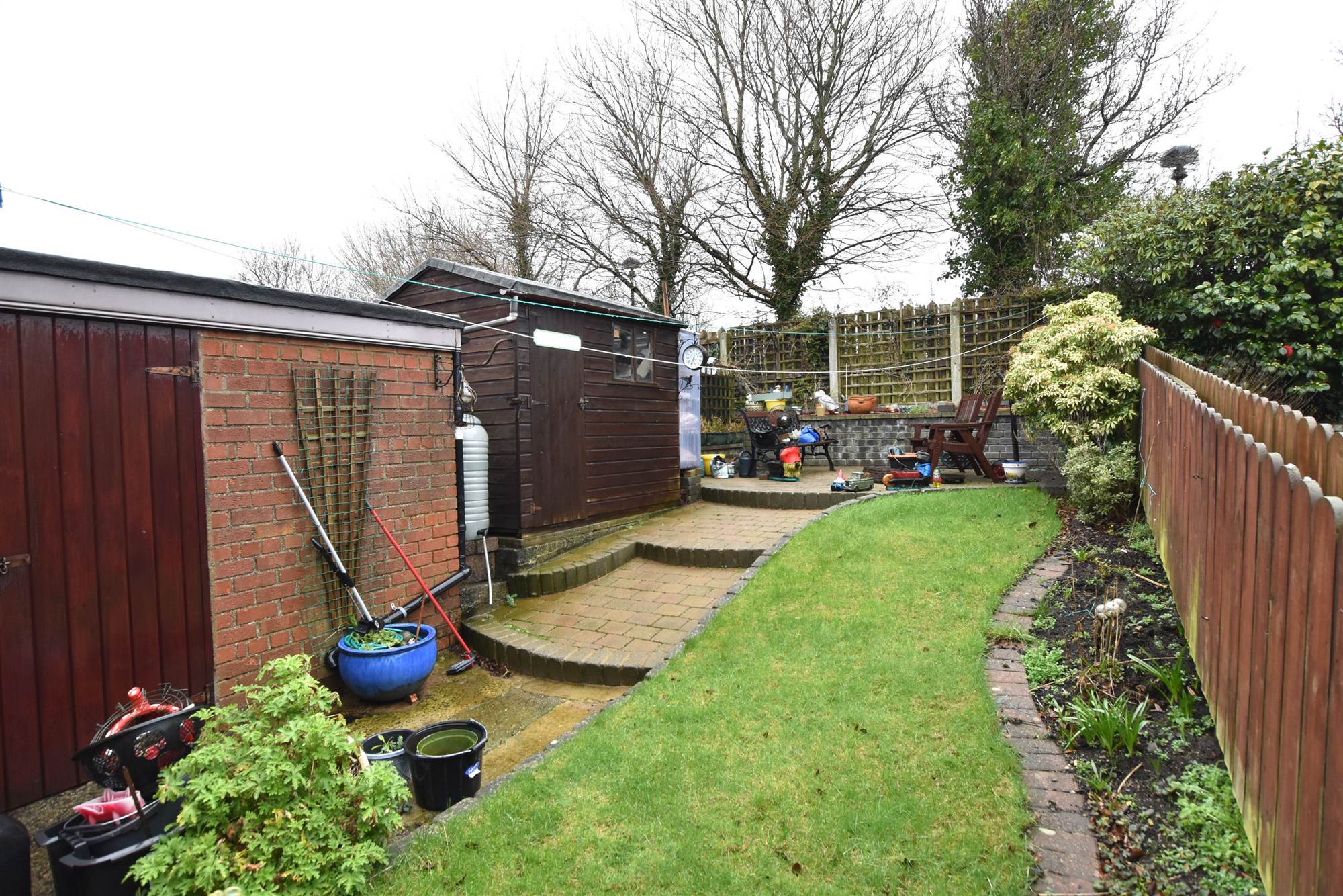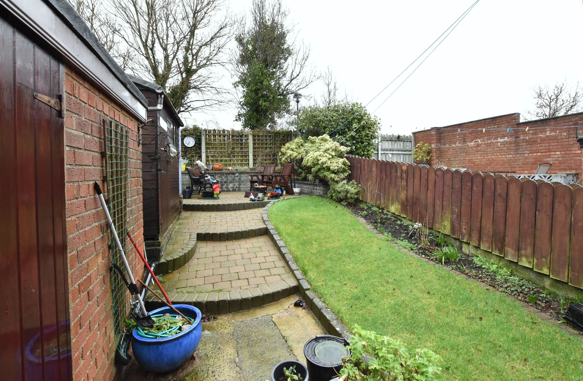 To front in paved patio area and rear enclosed in lawns, brick pavior patio area and fencing.