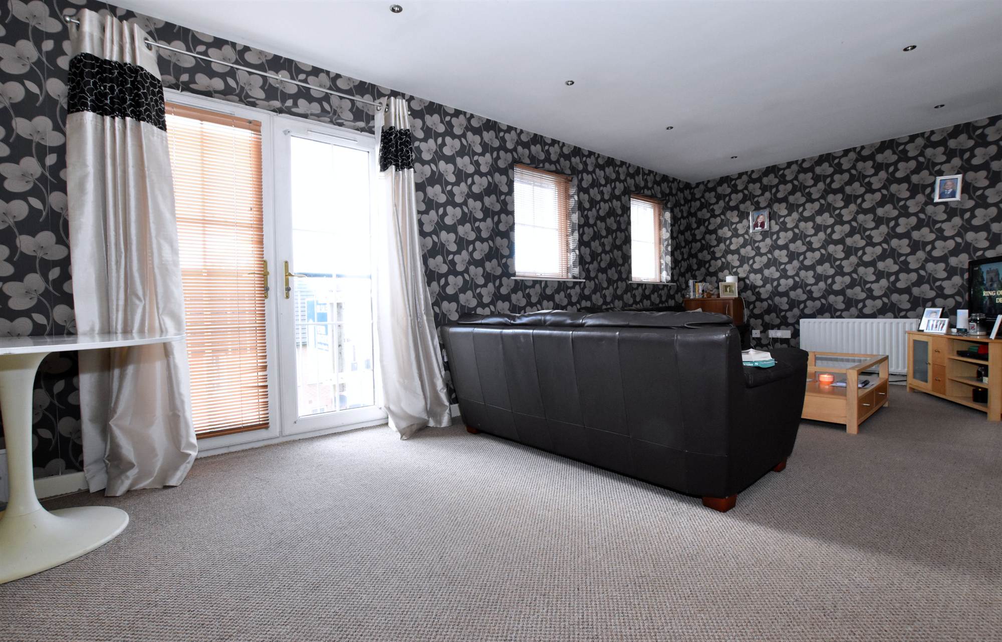 Recessed spotlighting, Upvc double glazed french doors, open plan to::..