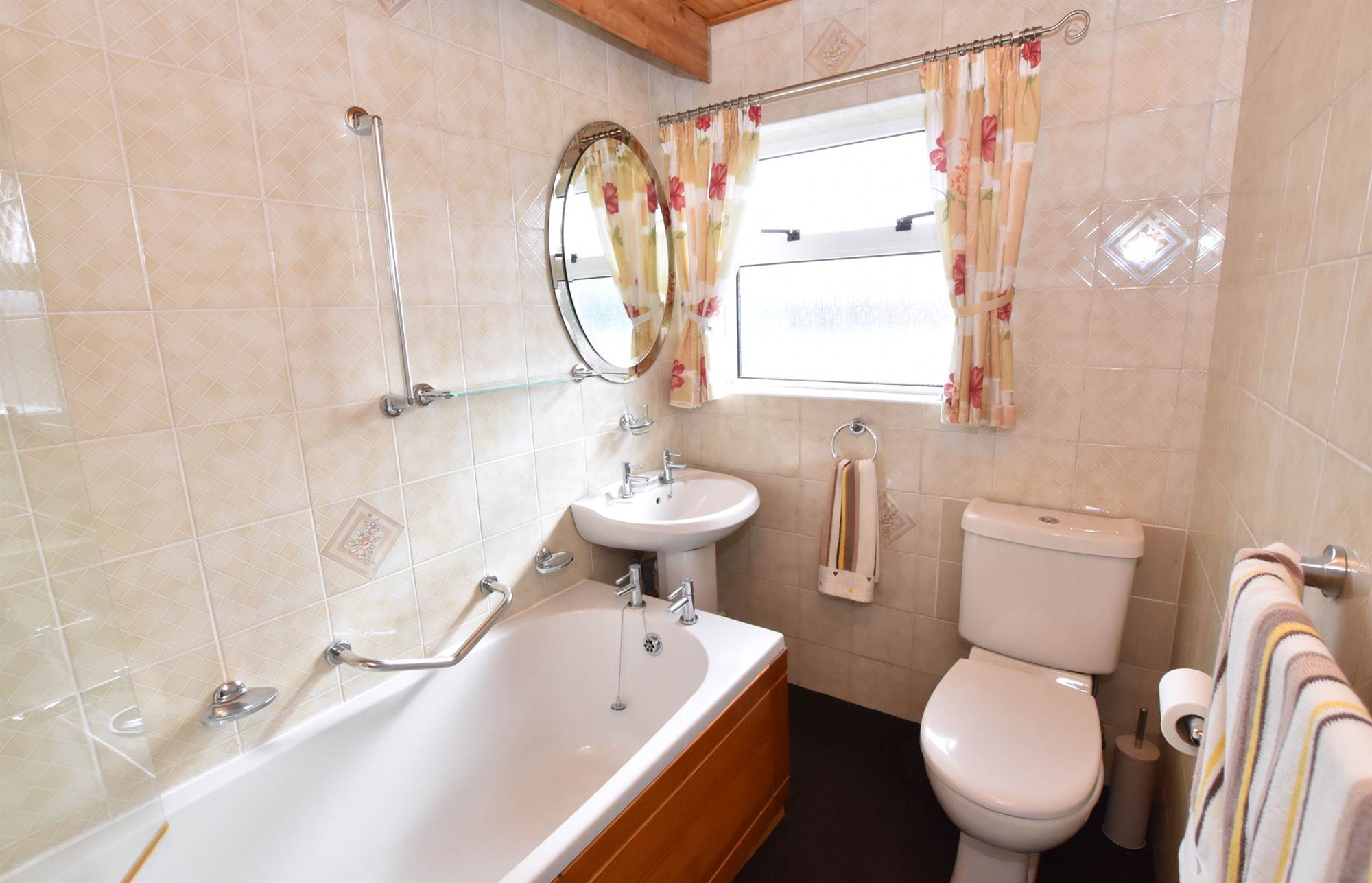 White bathroom suite with wall tiling.