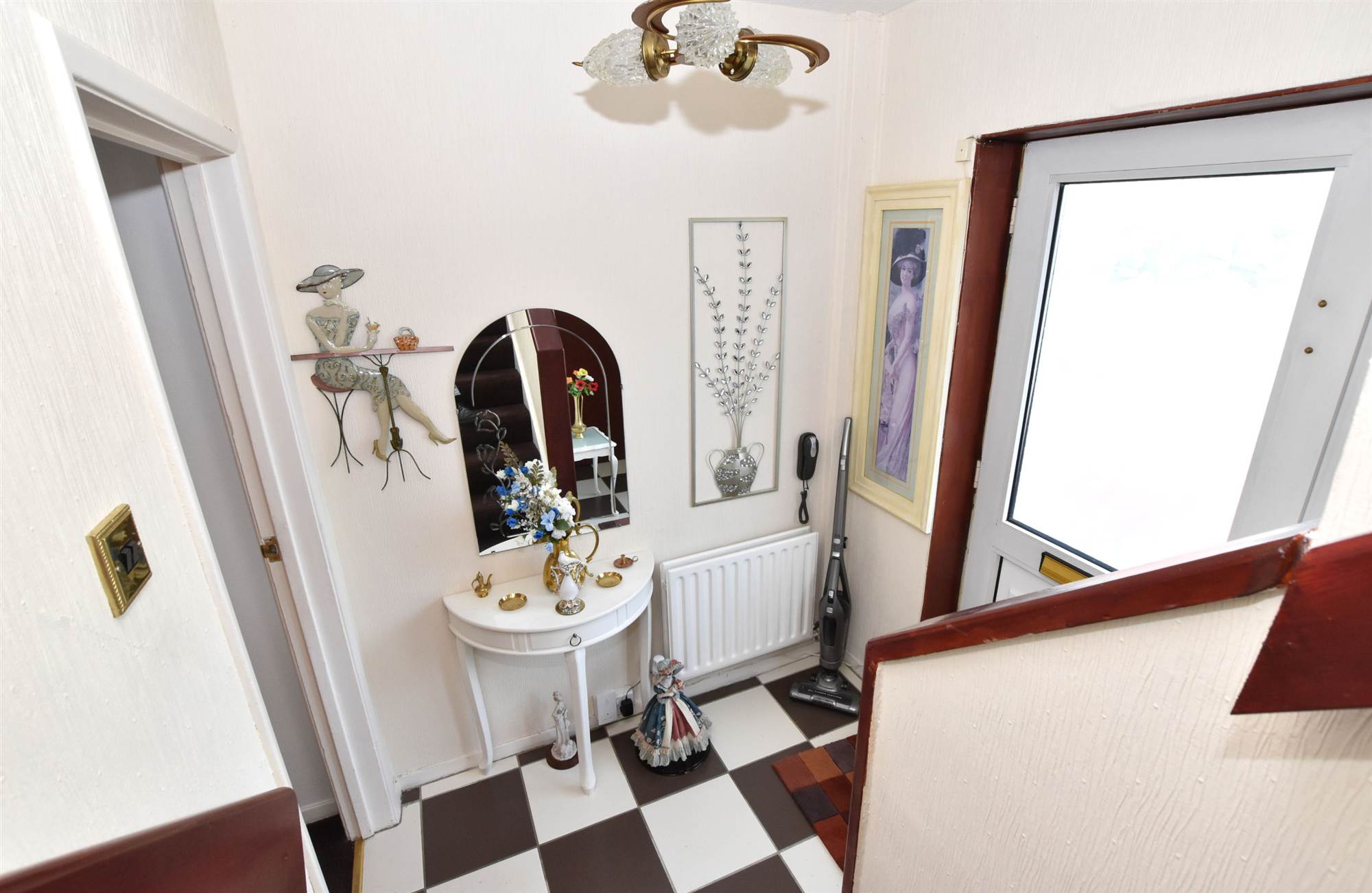 Entrance porch. Entrance hall with ceramic tiled floor. Cloaks cupboard understairs.