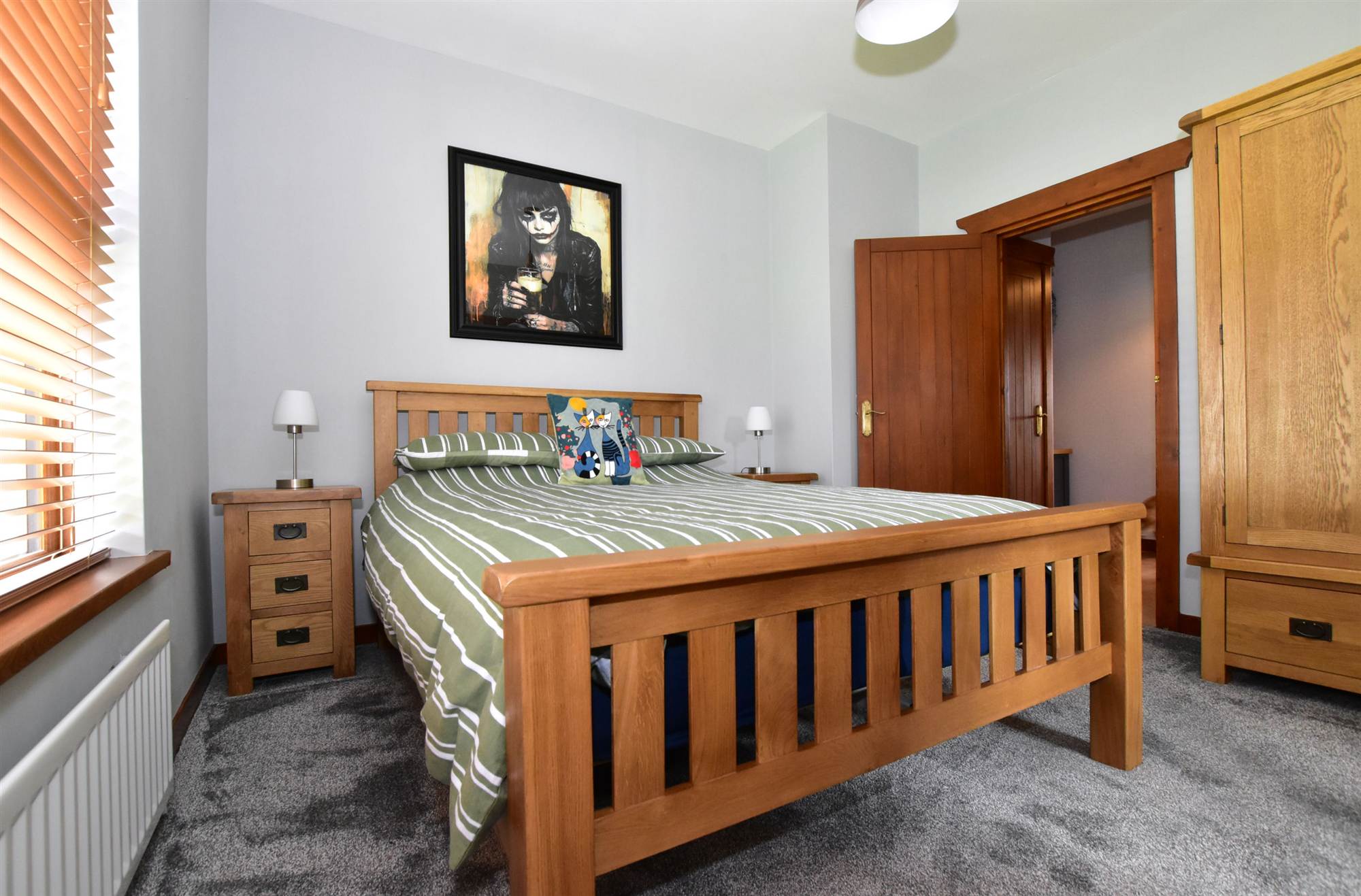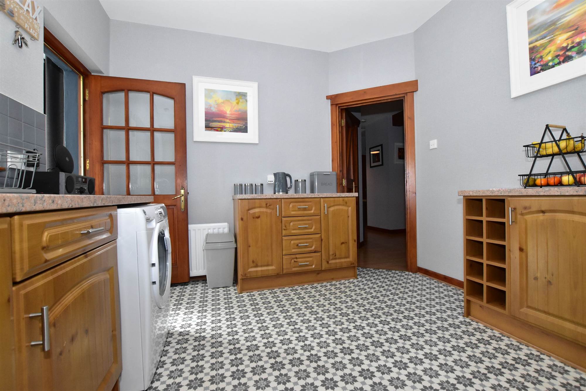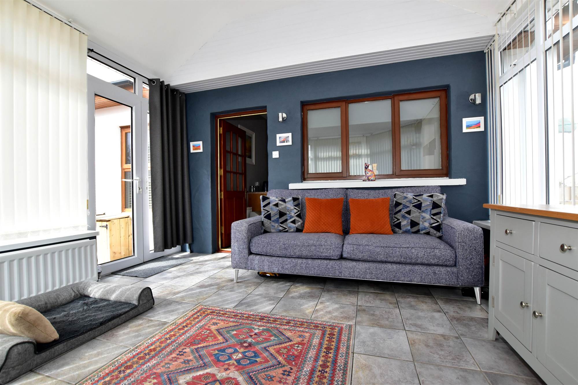 Ceramic tiled floor, Upvc double glazed french door.