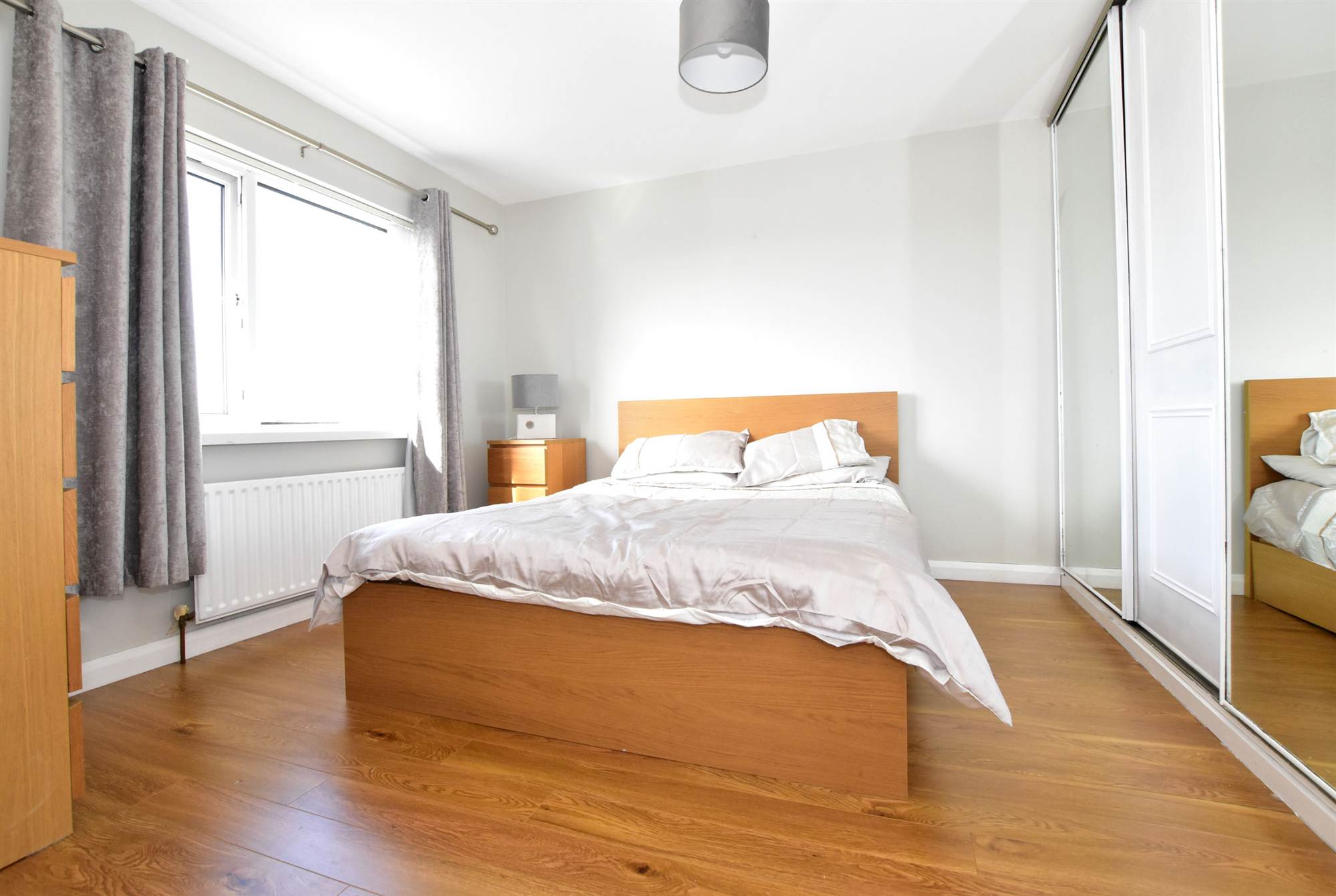 Range of sliderobes (Two with mirror fronts), polished laminate floor.