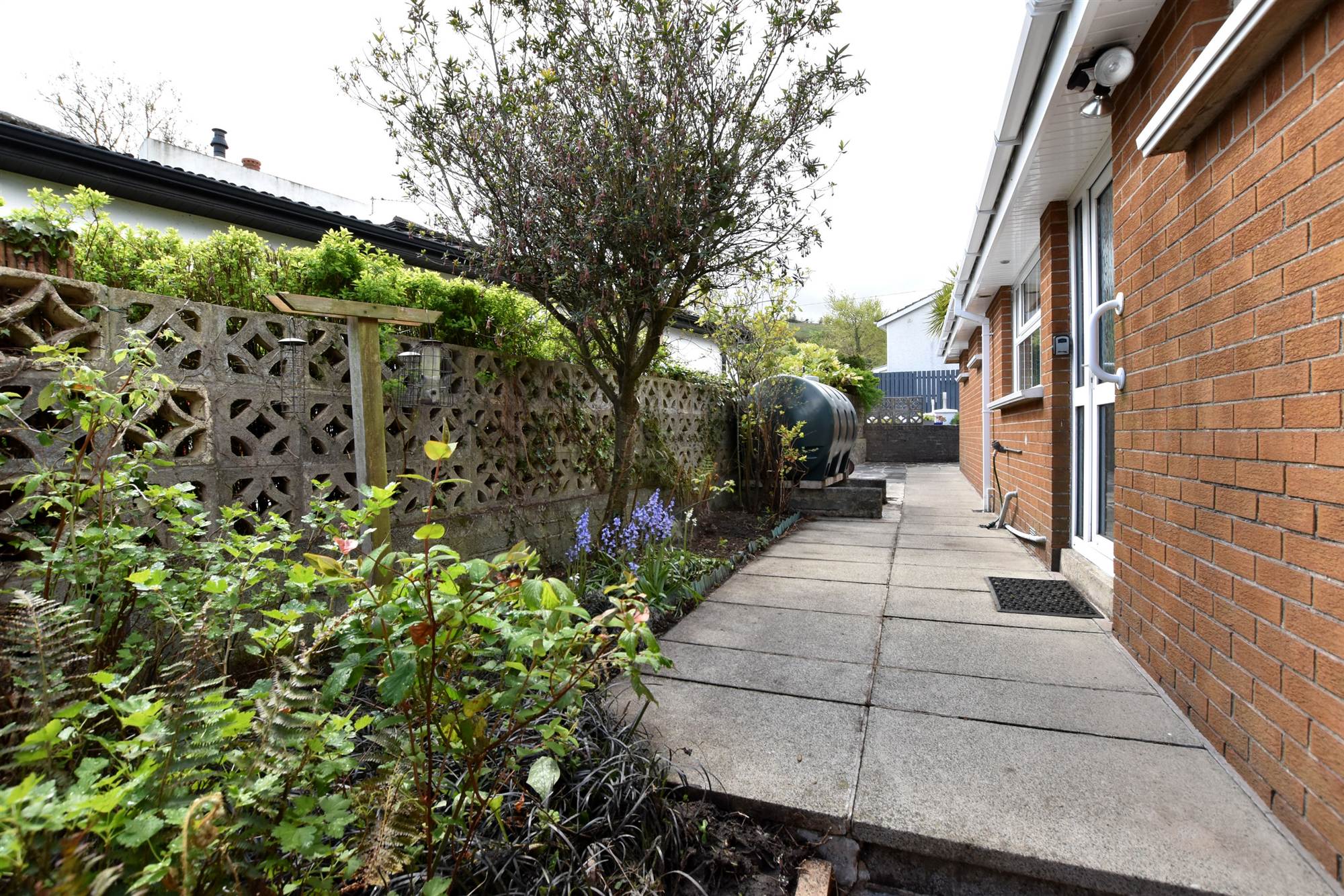 Gardens to side and rear in lawns, trees, bushes and paved patio area.