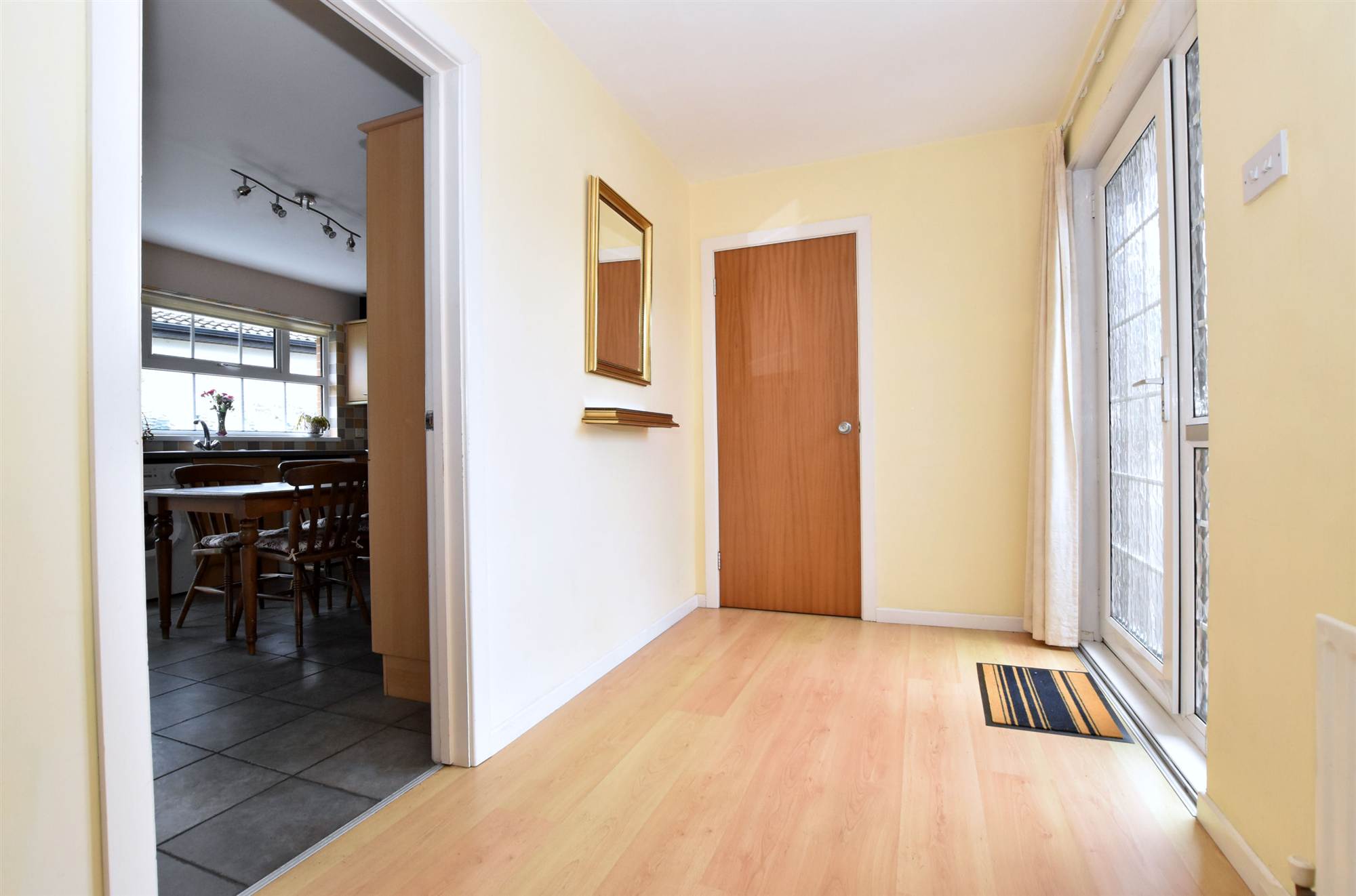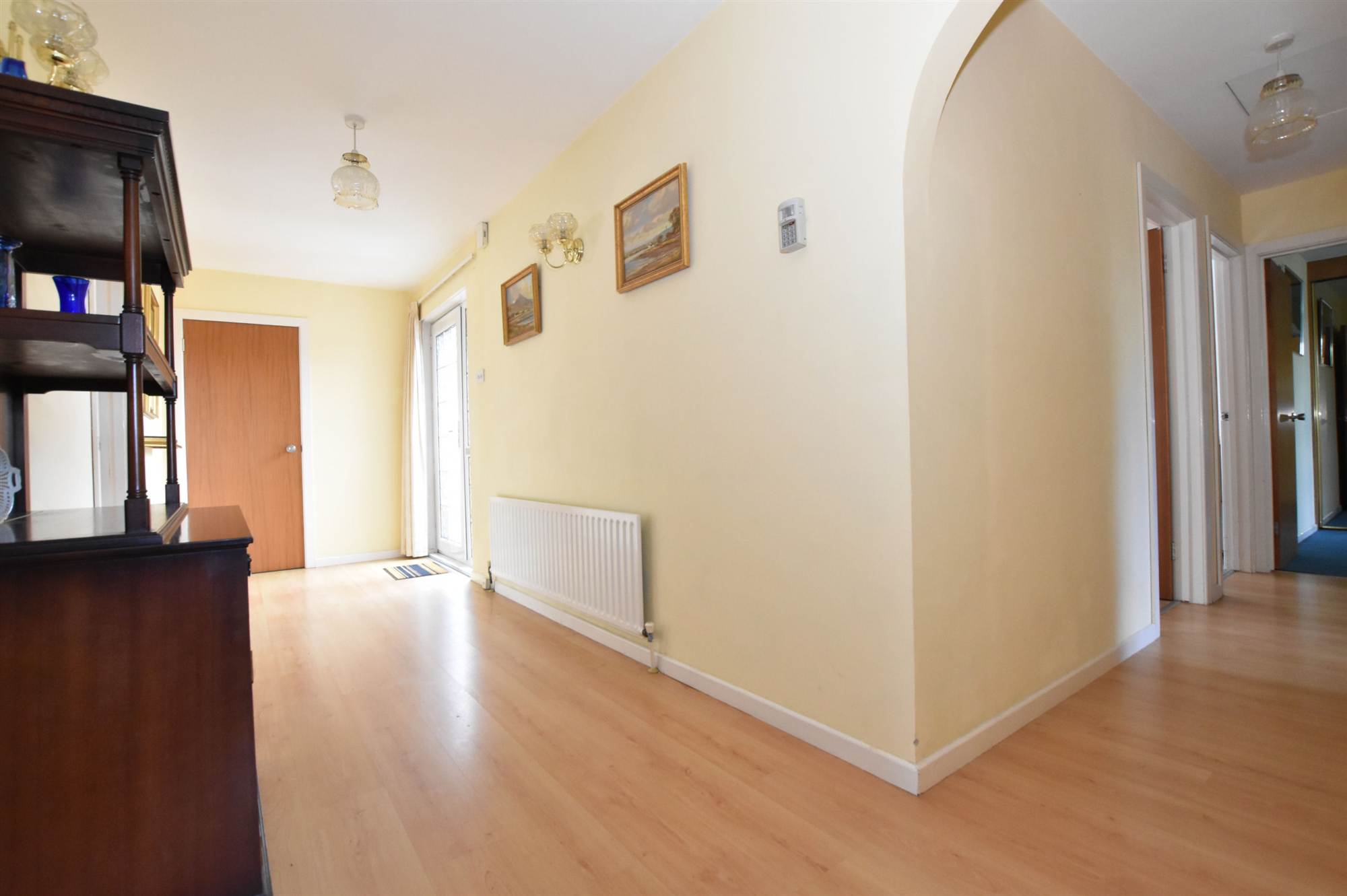 Entrance hall with polished laminate floor.