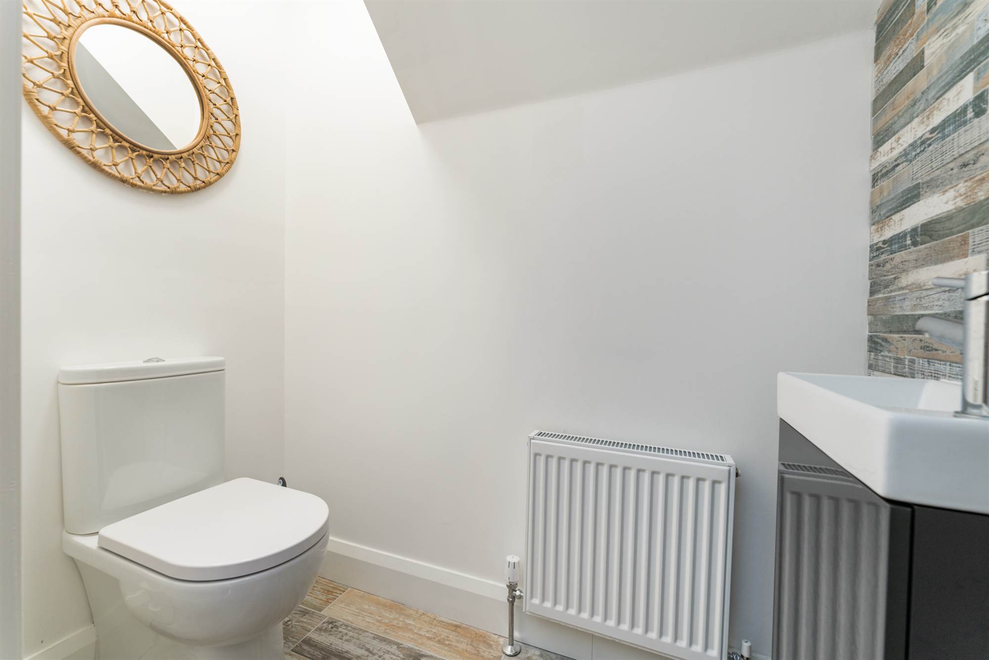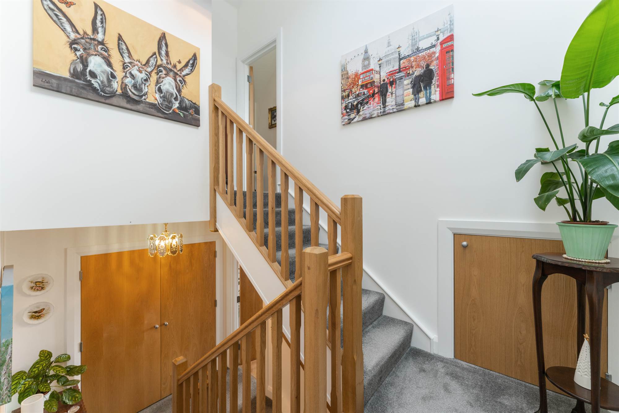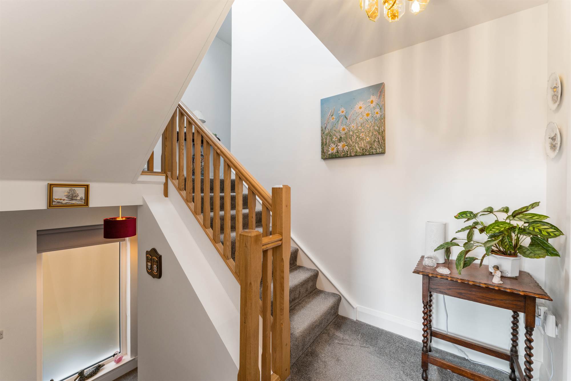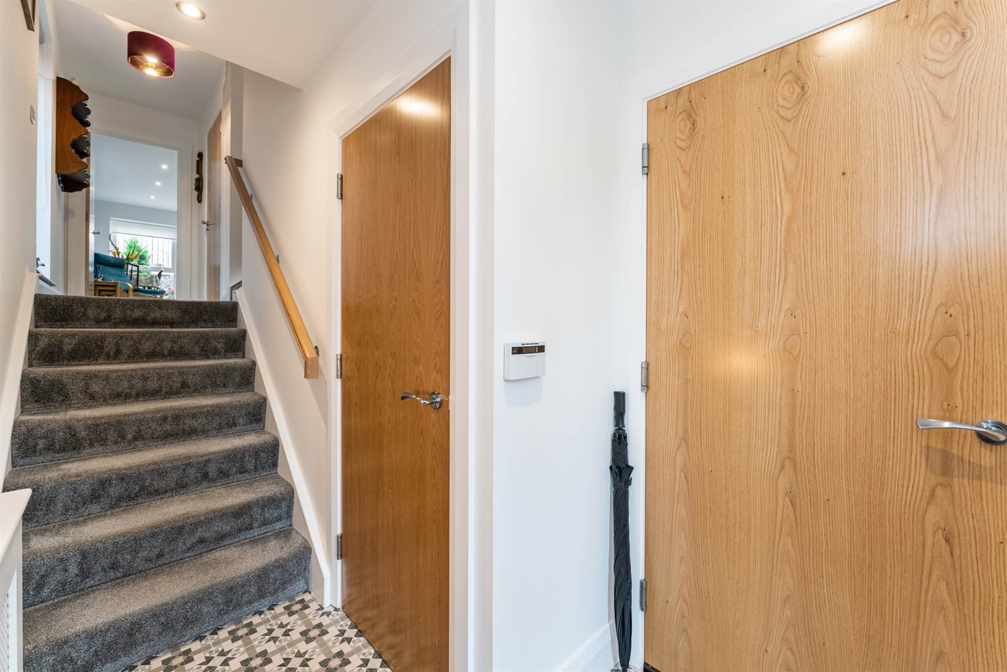 Ceramic tiled floor, LED recessed spotlighting. Concealed cupboard with gas boiler and shelving. Door to integral garage. Stairs to first floor.