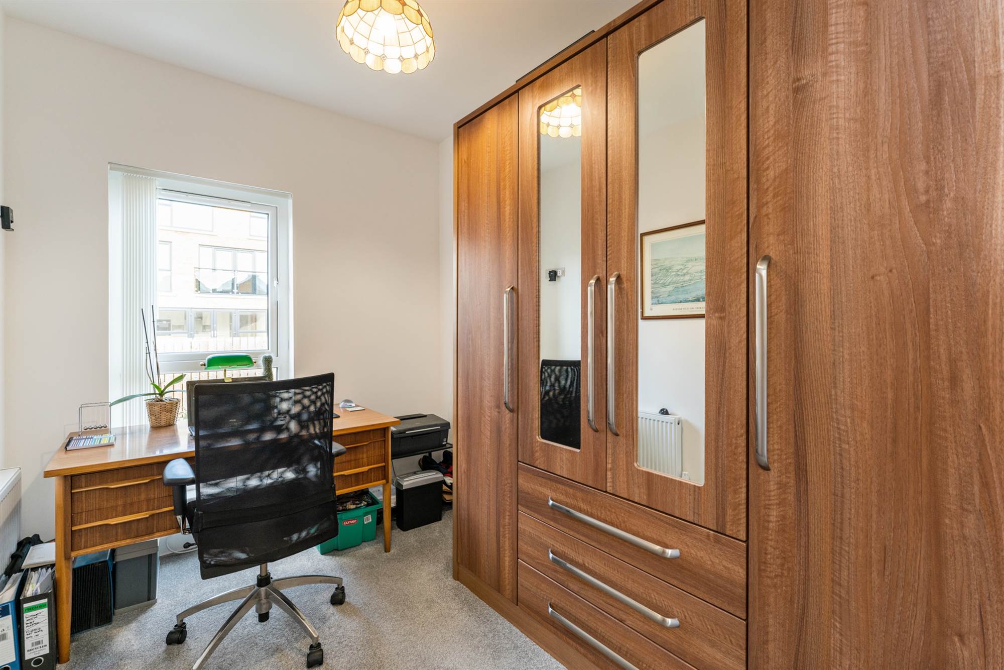 Polished engineered light oak floor, LED recessed spotlighting, uPVC double glazed French doors to Juliet balcony with glass panel balustrade, TV and telephone points.