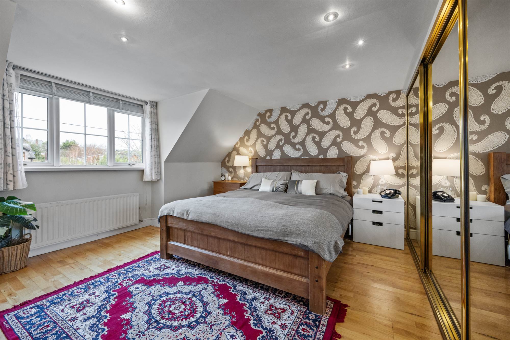 Polished oak floor, full width range of mirror fronted Sliderobes, views to Craigantlet, open to Ensuite.