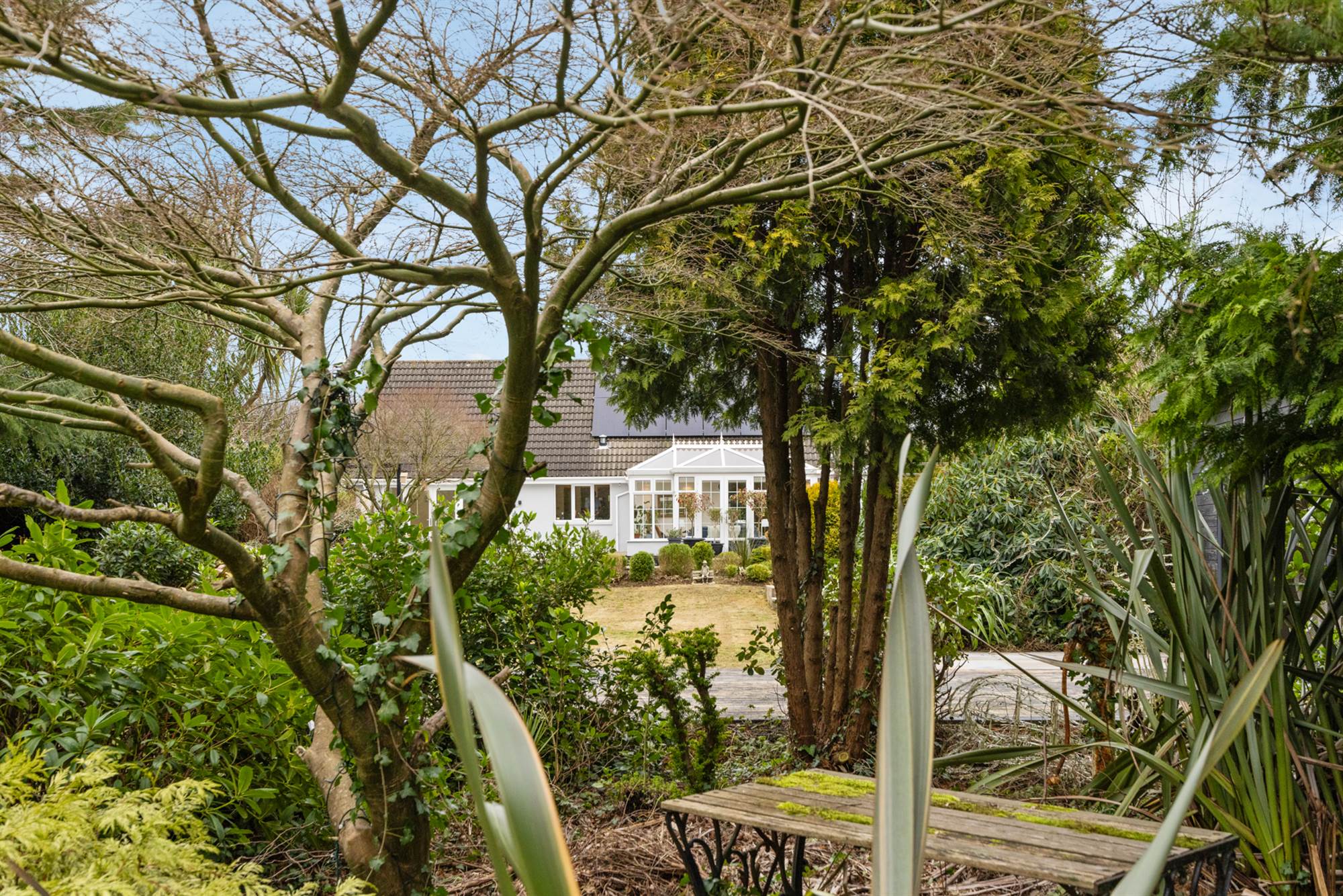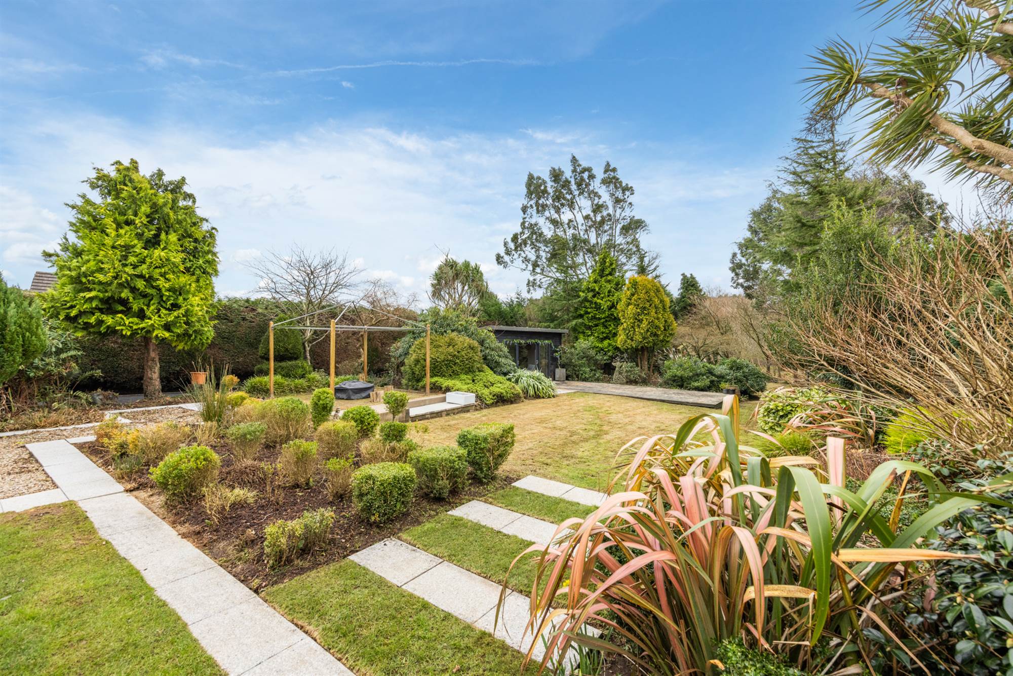 Fabulous c 0.5 acre plot with extensive multi layered planting schemes, formal and informal areas