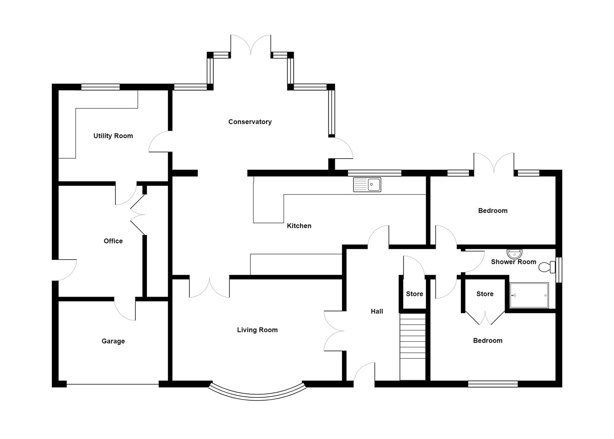 The subject property offers well-proportioned accommodation spread over two floors, comprising: entrance hall, lounge with Granite fireplace, large luxury fitted kitchen/ dining space with modern White and Walnut units, Quartz tops, range of integrated appliances and impressive concealed breakfast pantry, the kitchen area is open to a beautiful conservatory with views over the rear gardens and provides access to a family sized separate utility room. Also, on the ground floor there is a luxurious shower room flanked by two double bedrooms.