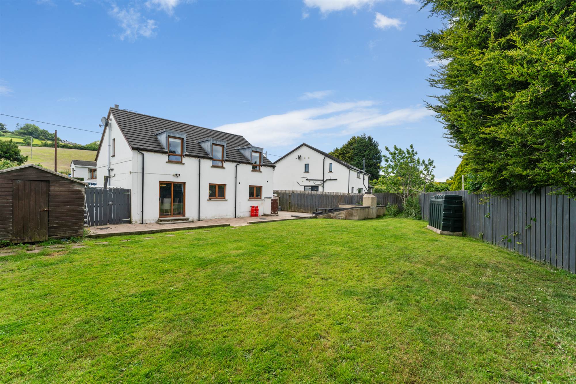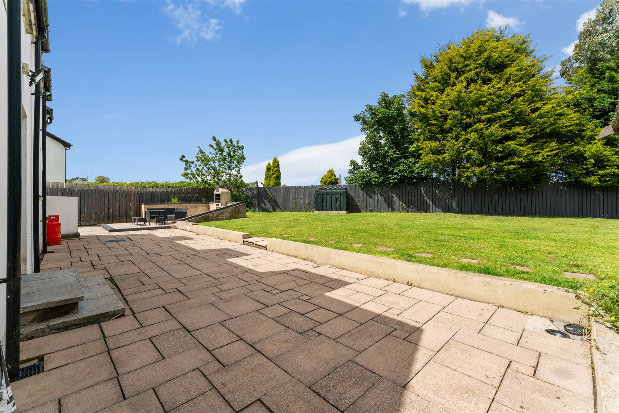 The property is positioned on level site with well presented gardens to front and rear, laid out in lawns, extensive paved patio area, BBQ area, flower bed, fencing, garden shed, oil storage tank, outside lights, outside water tap, access to side for bins, oil etc.