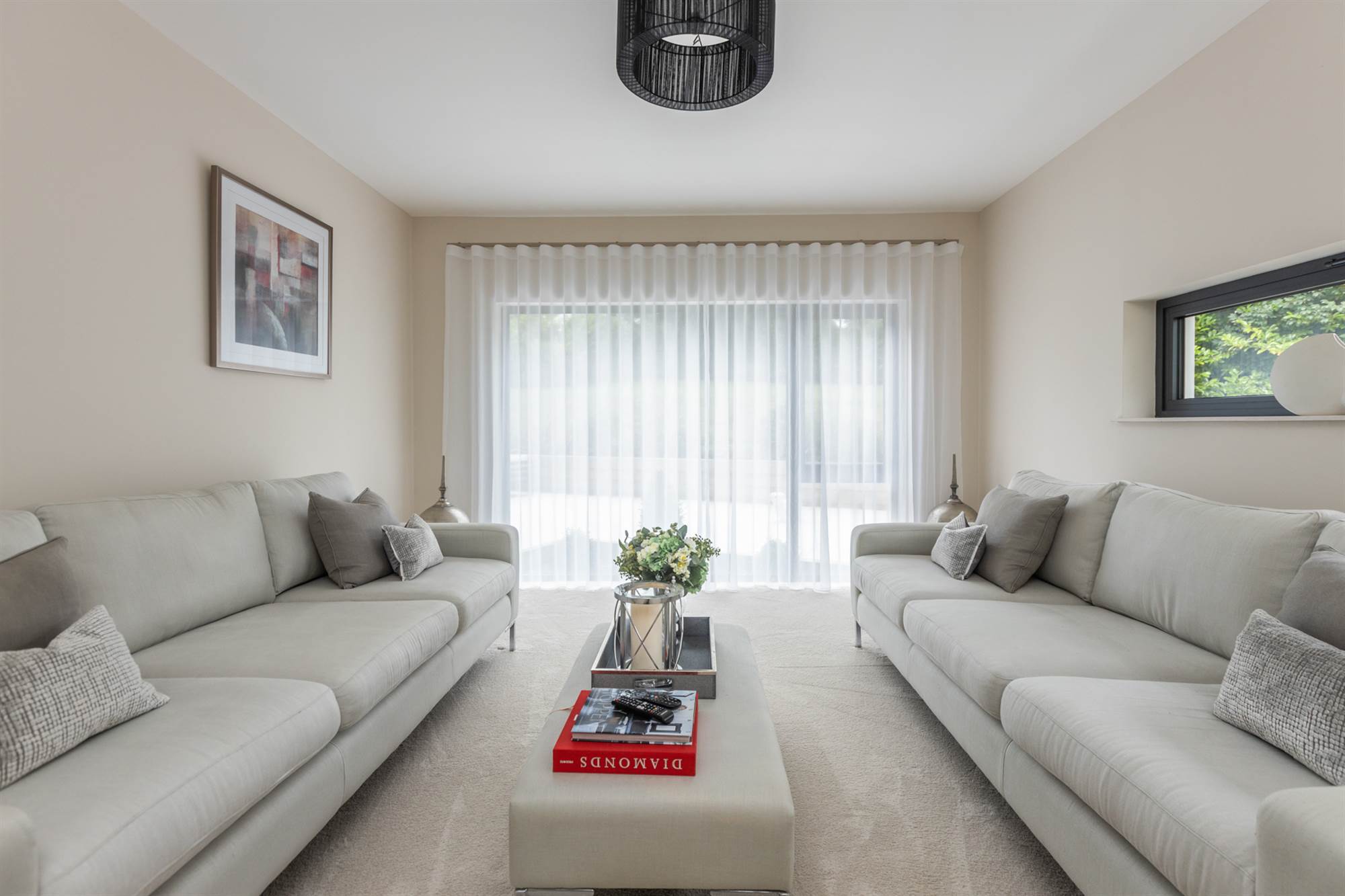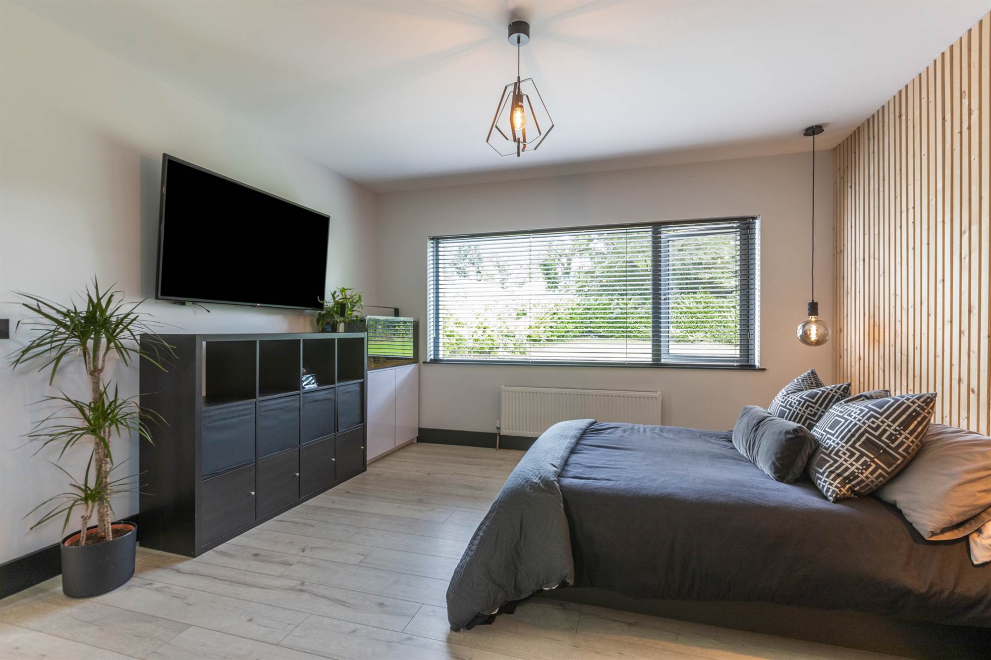 Feature floor to ceiling window, limed oak floor.