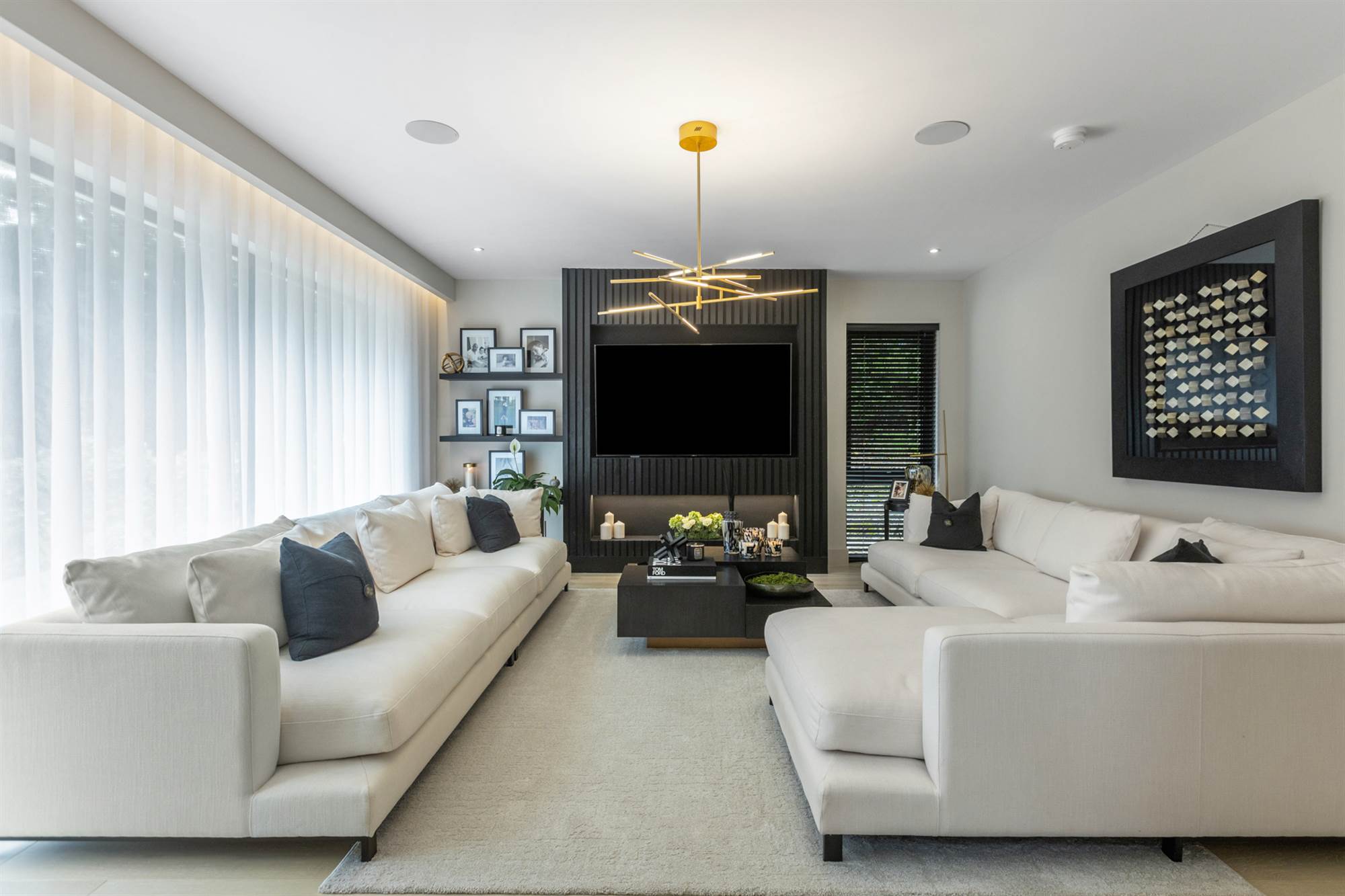 Built in TV cabinet, built in speakers, open to Kitchen.
