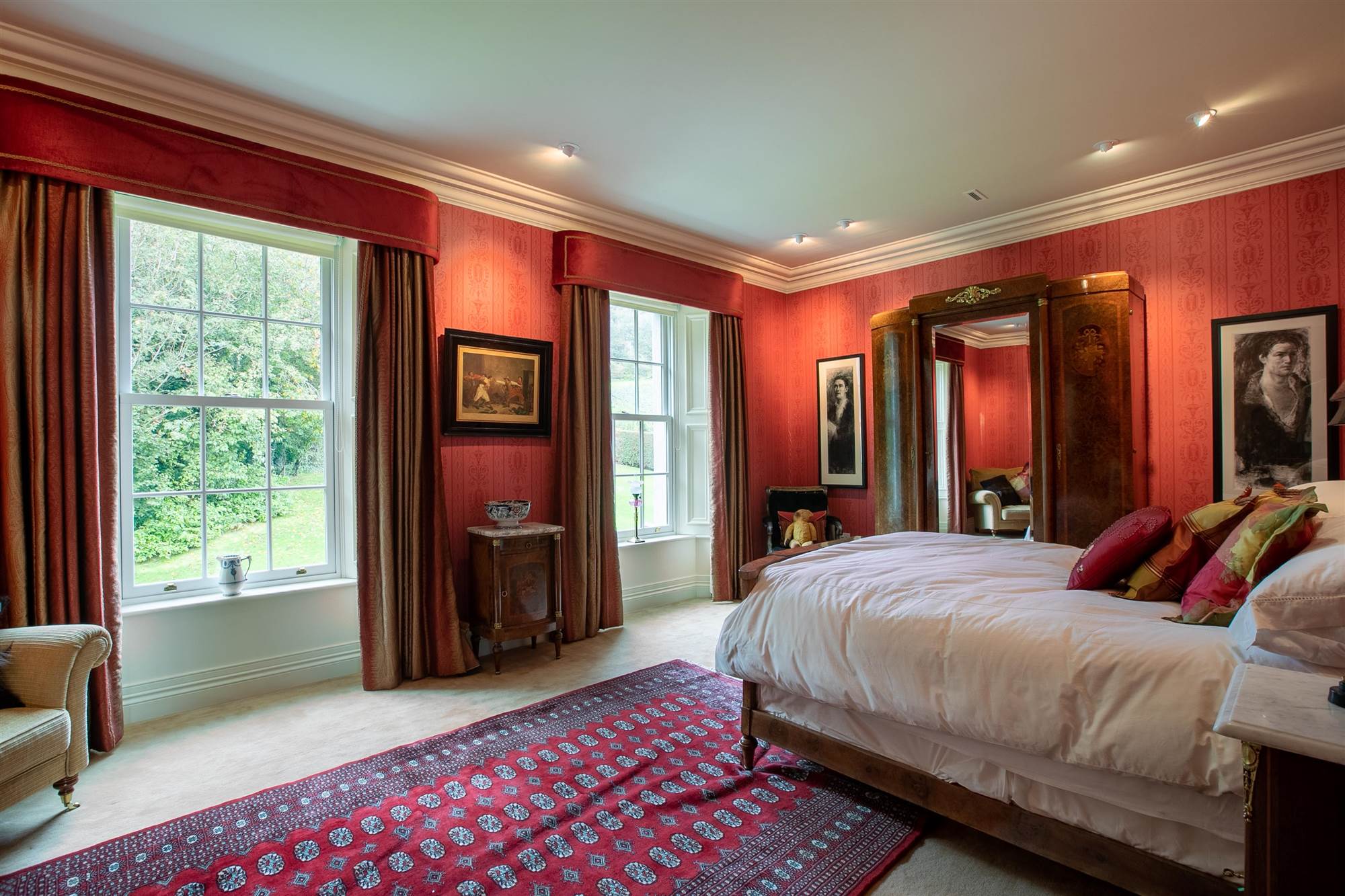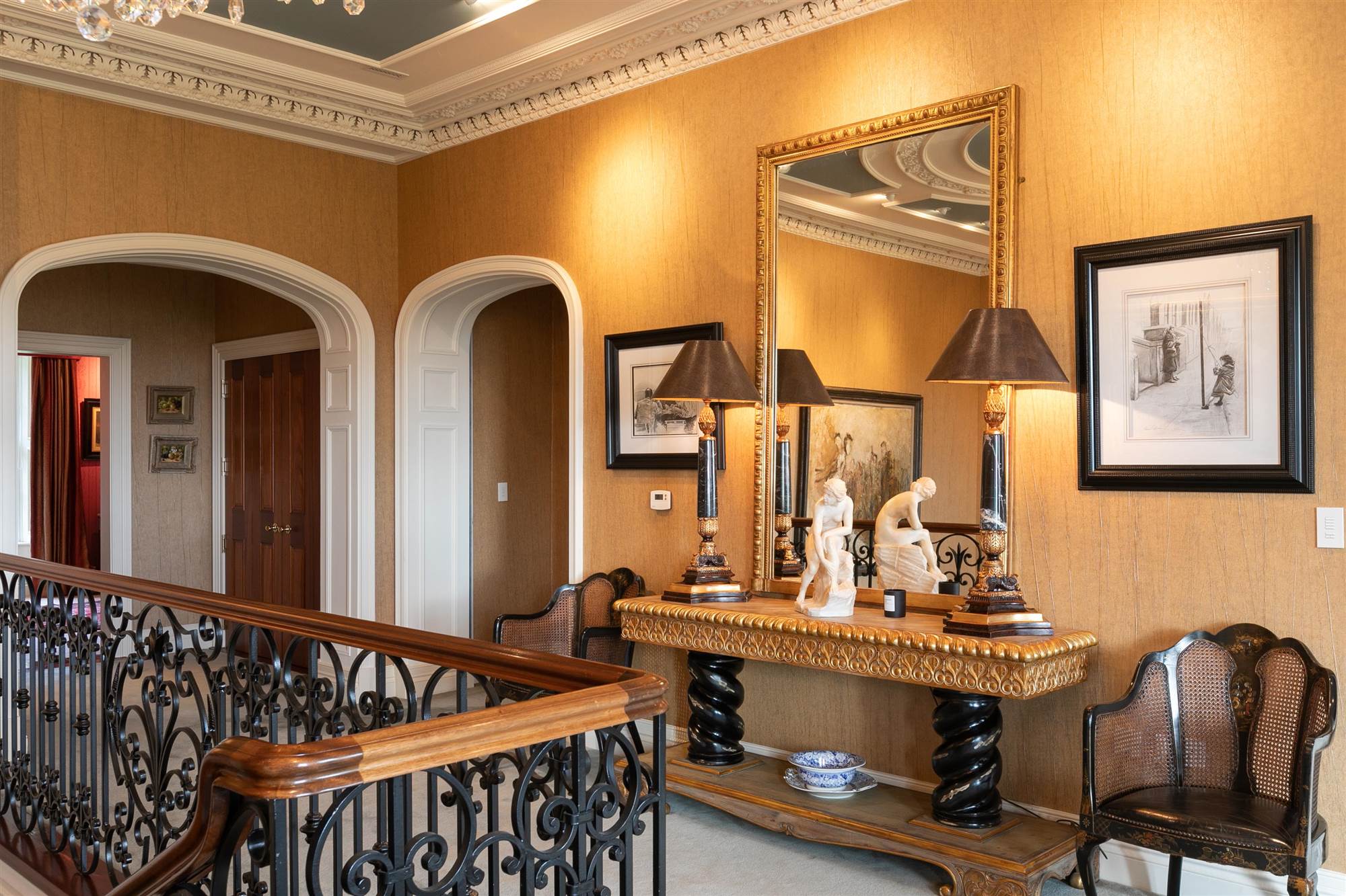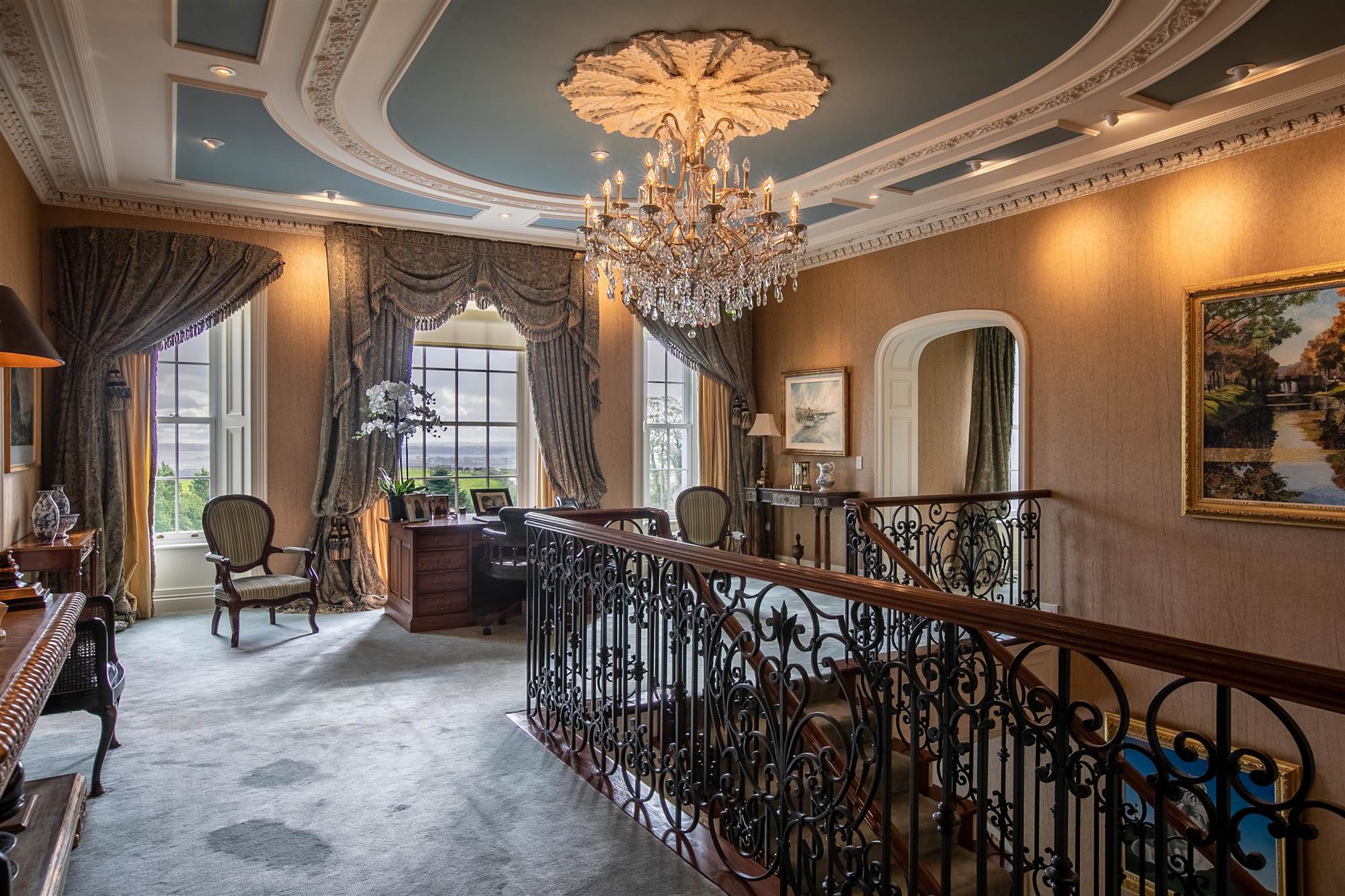 Ornate detailed ceiling, study/reading space, impressive views across gardens over Strangford Lough , storage cupboards.