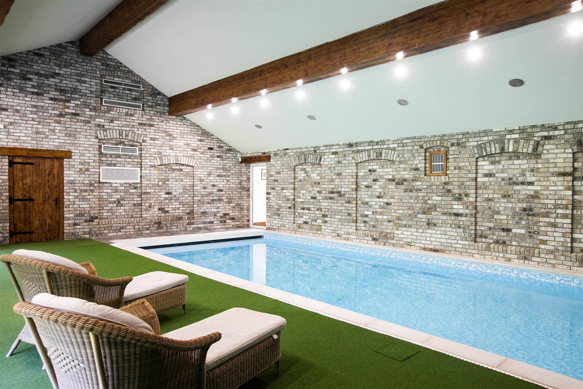 Pool house with 30 foot swimming pool, changing facilities, WC, sauna and kitchen