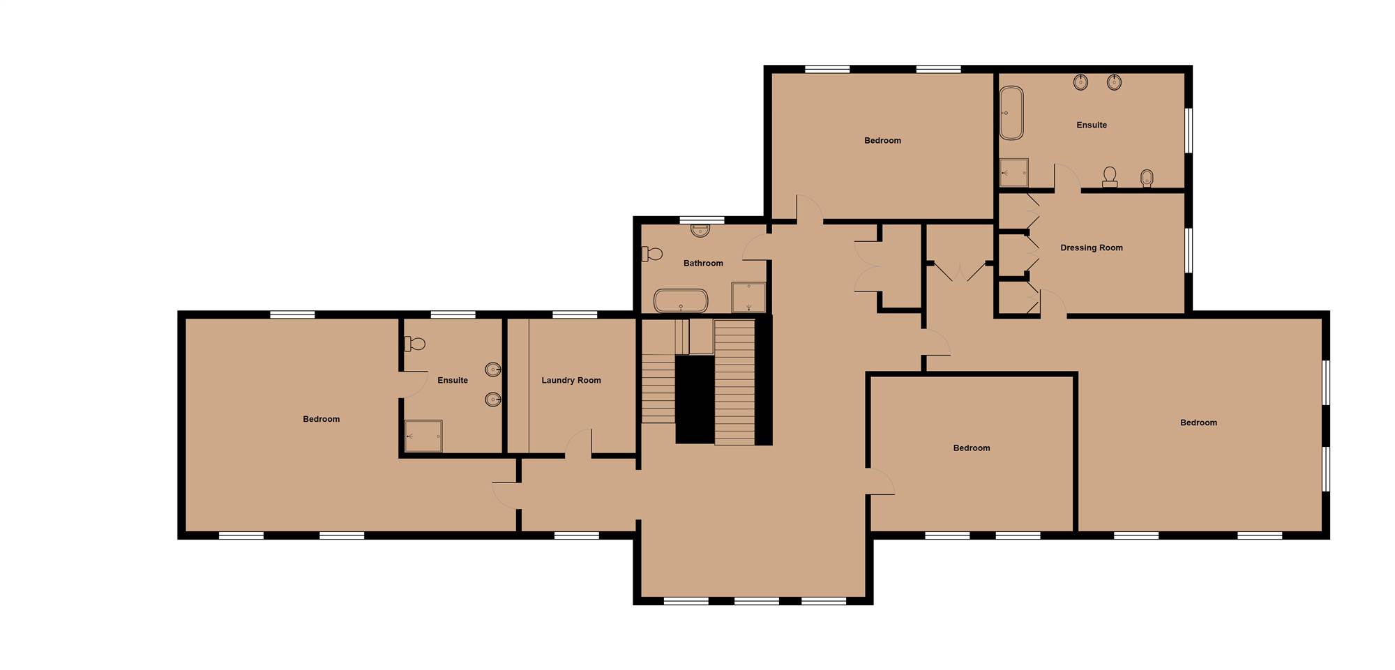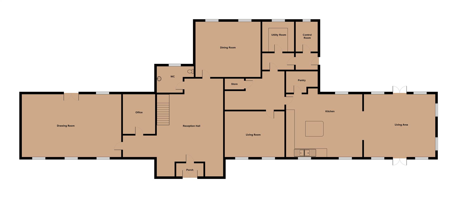 The main house has been sympathetically restored to retain traditional features and offers extensive accommodation over two levels. The house has been beautifully presented and decorated with a high end interior designer finish throughout. There is an exceptionally high standard of fixtures and fittings, with designer appliances in the kitchen and bathrooms, luxury tiling and flooring. The accommodation in brief consists of an impressive entrance hall, four reception rooms, kitchen and dining room, study, utility room, cloakroom and pantry. On the first floor there are four large double bedrooms, master suite with a dressing room and ensuite, bedroom two with ensuite, laundry room and a family bathroom.