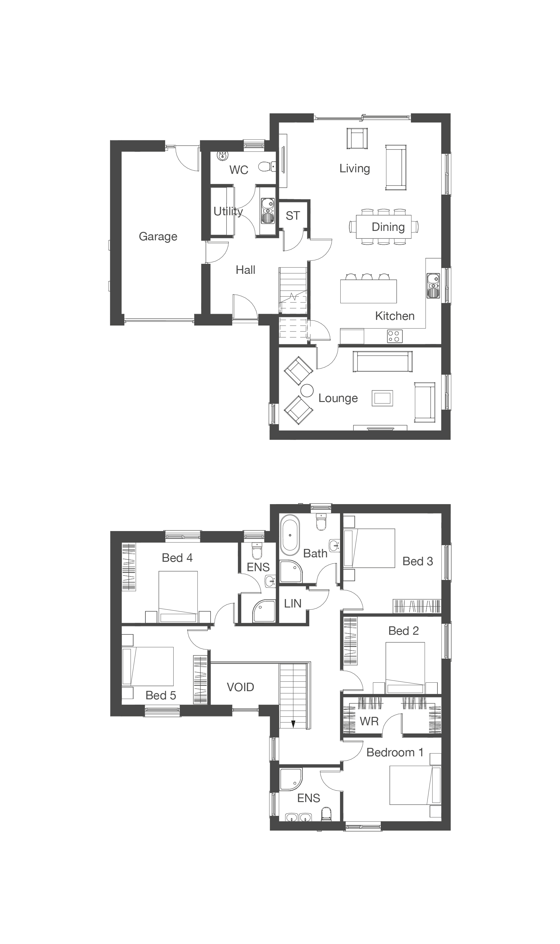 of your new home. And, as seen in our show home, internal doors are painted black with black ironmongery and feature black stair spindles.