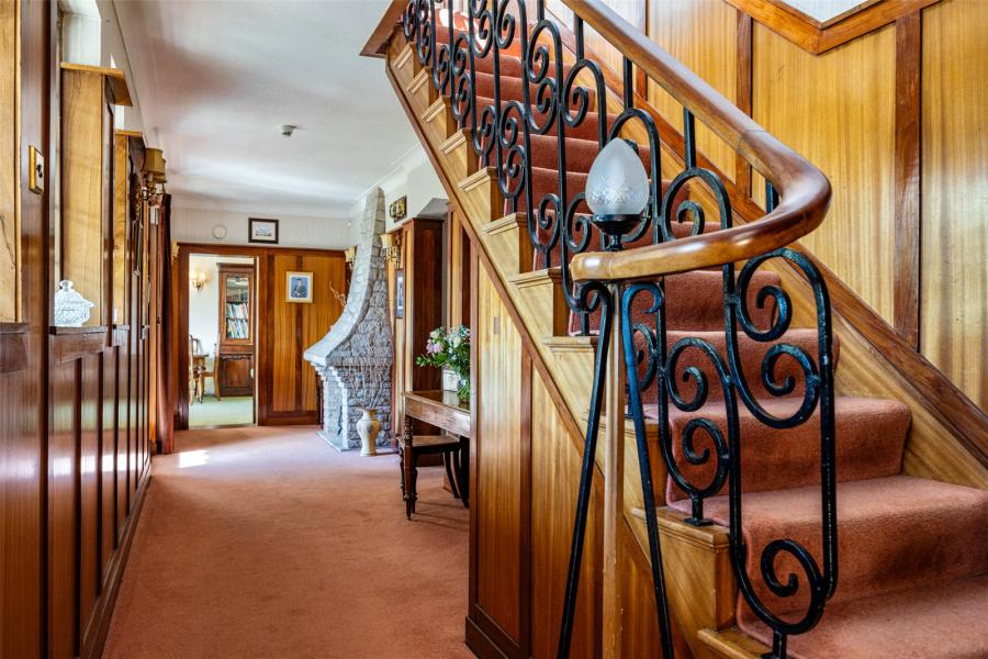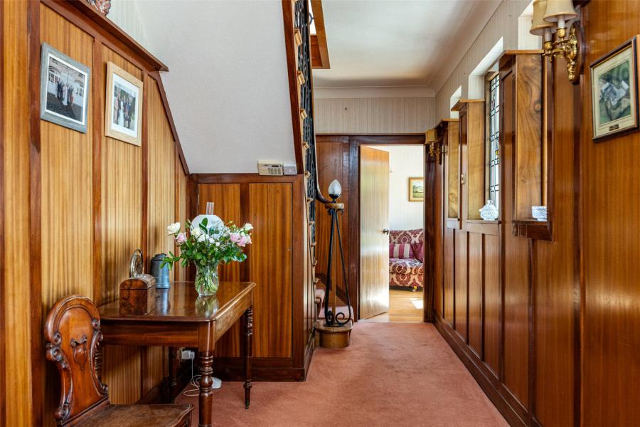 Large open Landing with far reaching views to Scrabo Tower and Strangford Lough. Wall panelling, wall light points, access to roofspace, concealed Hotpress with copper cylinder and immersion heater.