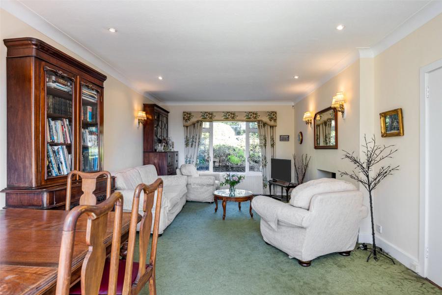 Feature fireplace with multi fuel stove, slate hearth, wall light points, dual aspect, corniced ceiling, recessed spotlighting.