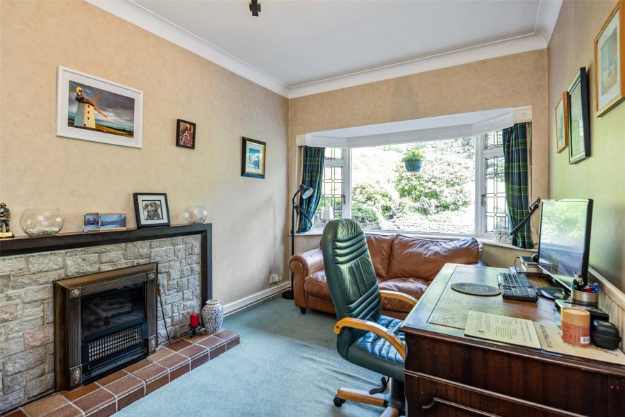 Mock stone fireplace, wall panelling, wall light points, telephone point, corniced ceiling, feature leaded glass windows.