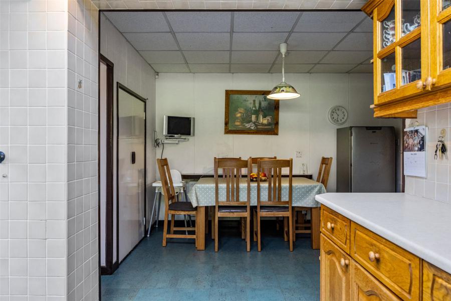 Plumbed for washing machine, vented for tumble dryer. Door to Garage.