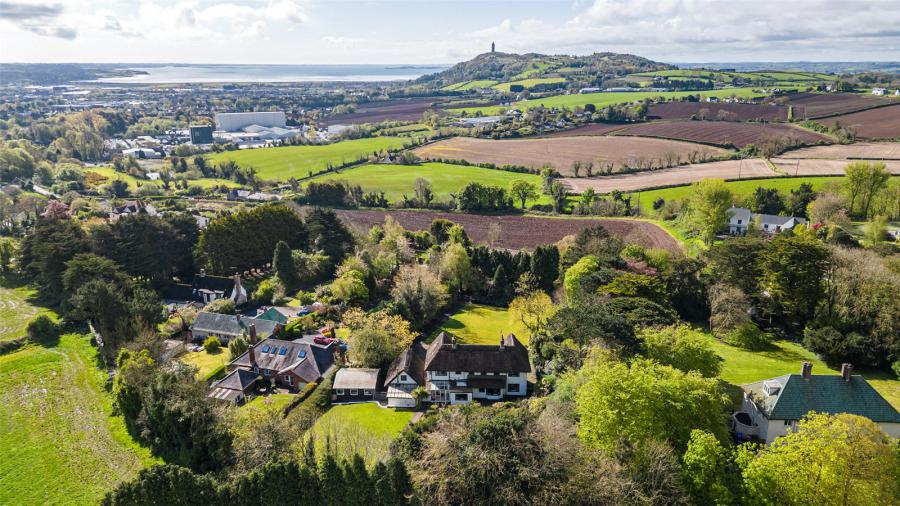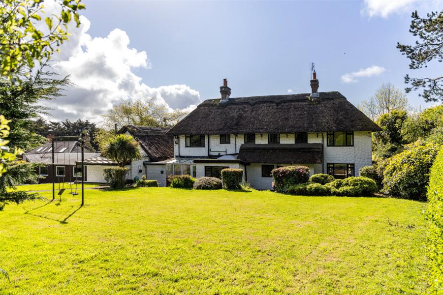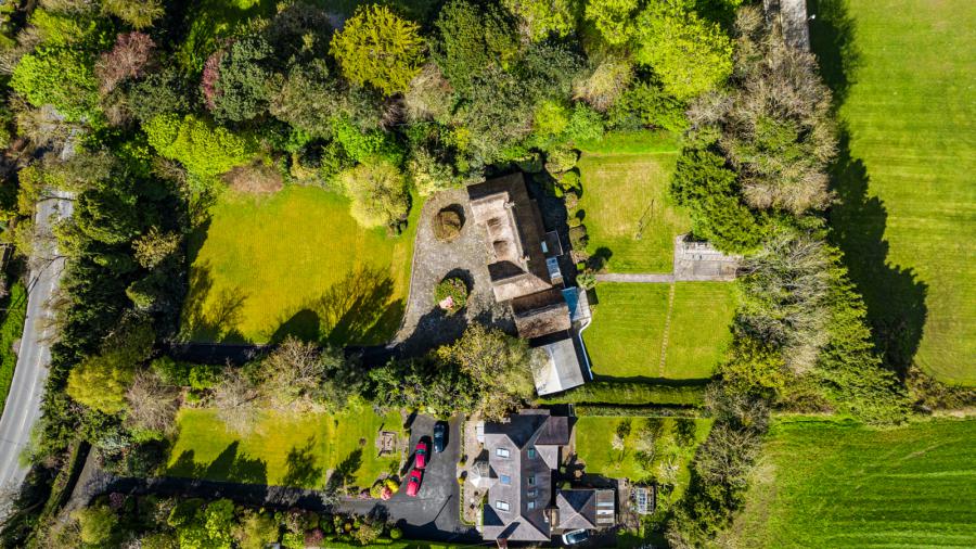 Resting on a secluded, elevated site, of around 1 acre, providing formal gardens set out in large manicured lawn areas, a collection of mature trees, hedging, well stocked borders, shrub beds, and further offers fantastic parking facilities with turning circle.