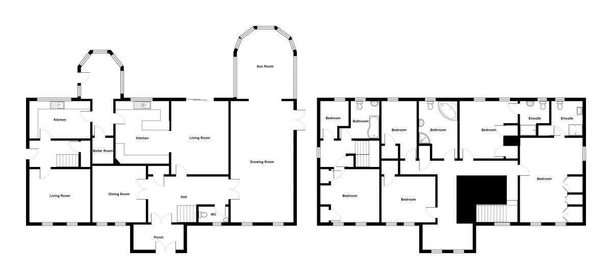 The two semi-detached cottages are a fantastic addition to the property, Ash Tree Cottage (left side) with a cottage style interior holds an entrance hall, large double height open plan lounge/ dining/ and fitted kitchen space with feature Pitch Pine floor and wood burning stove. There is also a good sized sun room and shower room on the ground floor. At first floor level there is a double bedroom with vaulted ceiling. Apple Tree Cottage (right side) offers a modern style of interior with entrance hall, large lounge/ dining room with feature double height ceiling luxury fitted kitchen, two double bedrooms, bedroom with en suite, there is a fully fitted luxury bathroom next to bed 2 on the first floor.