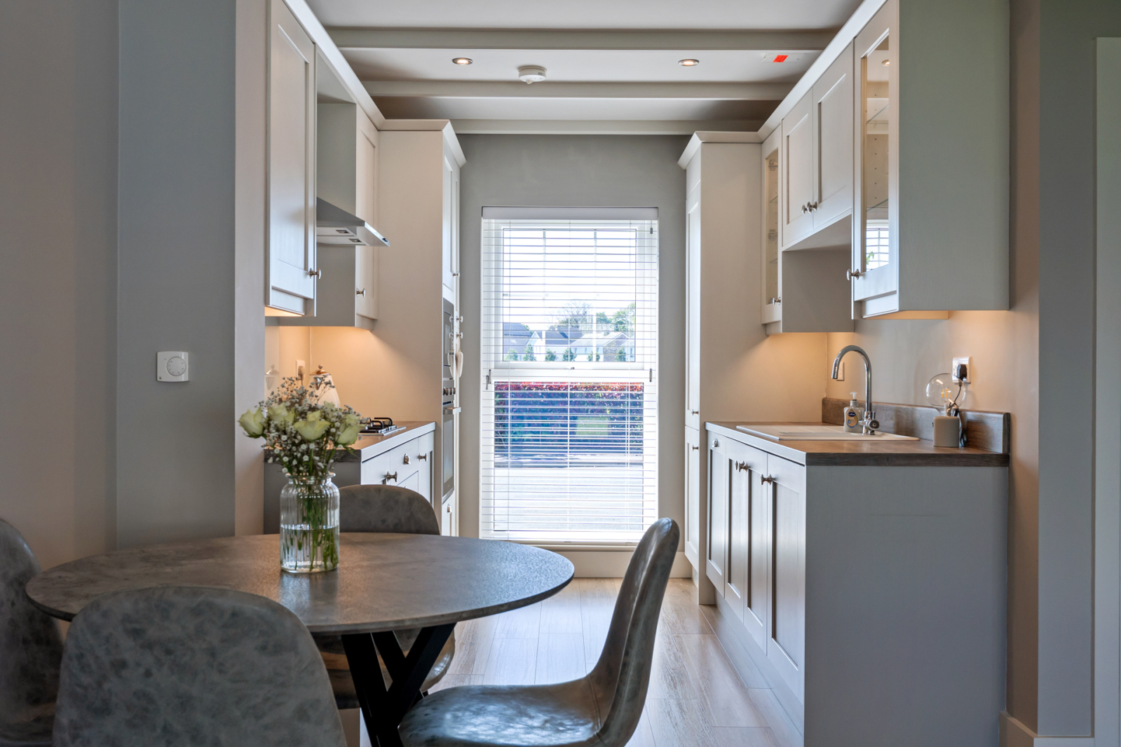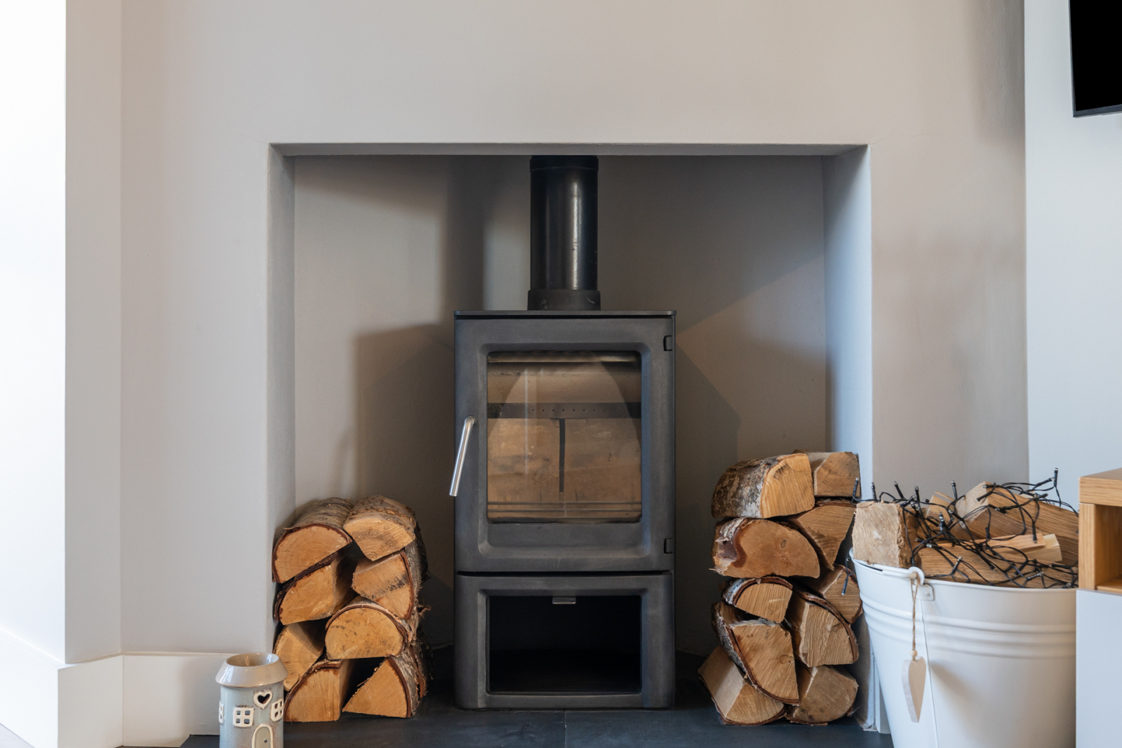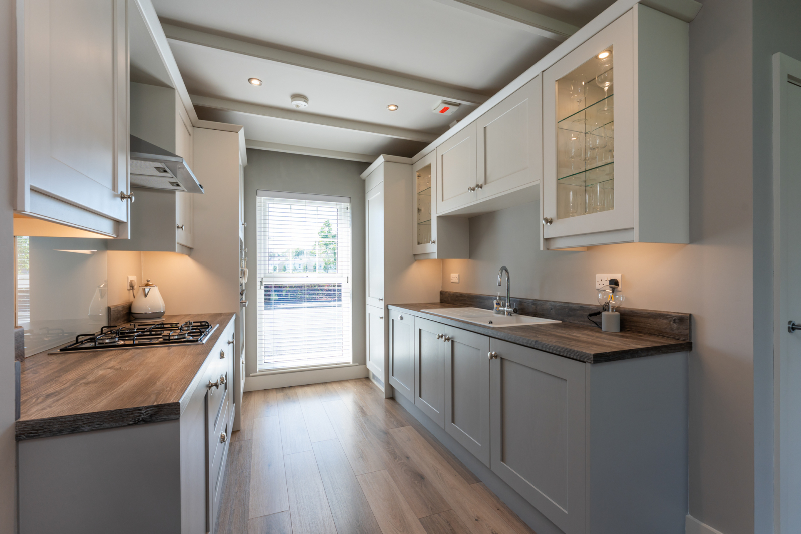 Wite 1.5 tub single drainer sink unit with mixer taps, excellent range of high and low level Cream and Cashmere shaker style units, Formica roll edge work surfaces, 4 ring ceramic hob unit, glass splashback, stainless steel extractor hood, integrated fridge freezer, built in oven, microwave and dishwasher, display cabinets, concealed lighting, polished laminate floor, dual aspect, LED recessed spotlighting, feature fireplace, wood burning stove, polished laminate floor, dual aspect, LED recessed spotlighting, feature fireplace, wood burning stove, TV and telephone points, uPVC double glazed door to rear with large window overlooking rear garden.