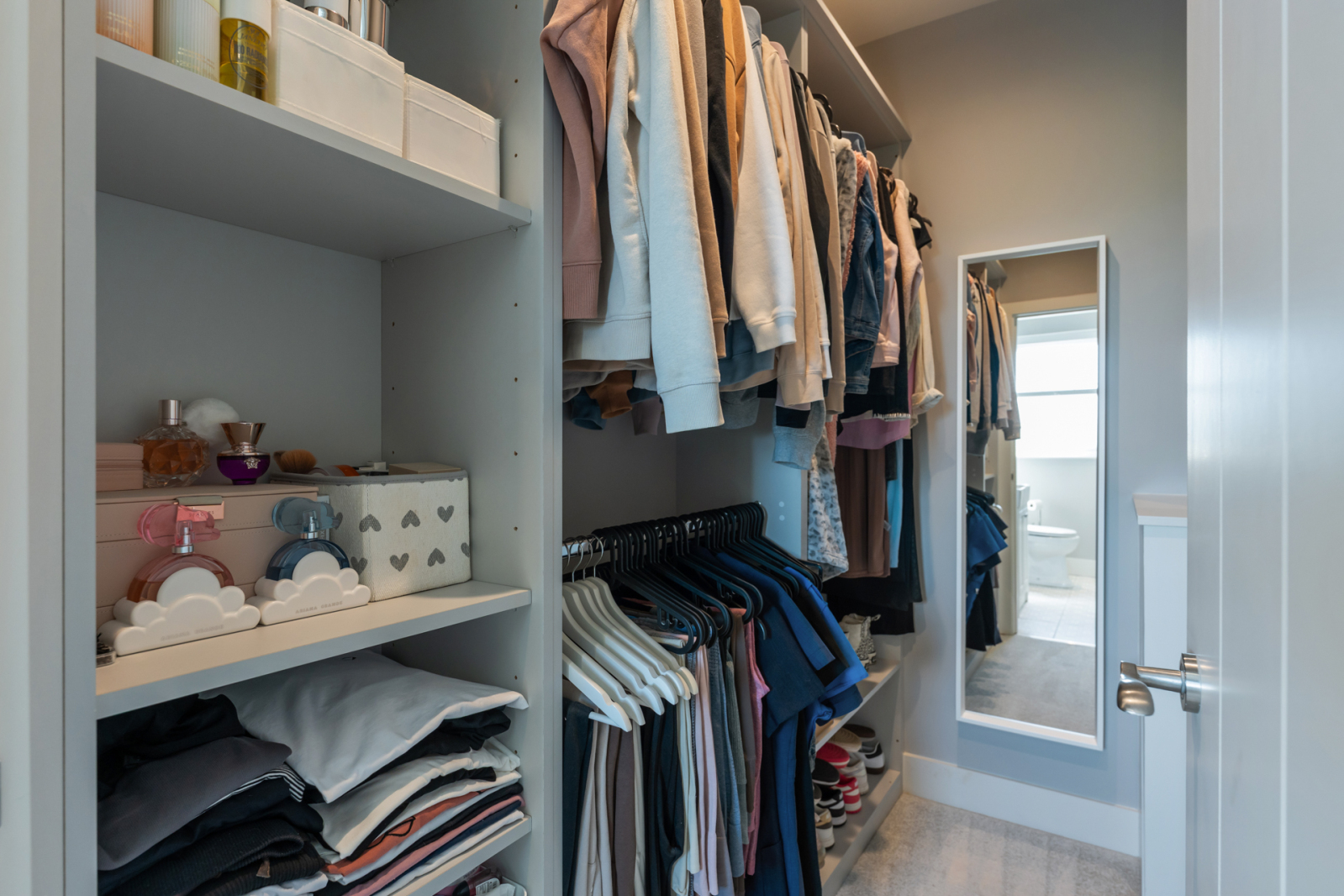 Excellent range of built in shelves and double hanging space, LED recessed spotlighting.