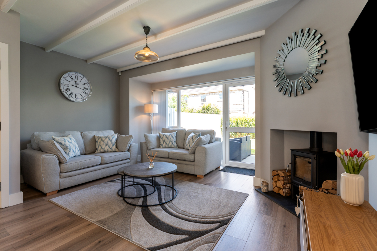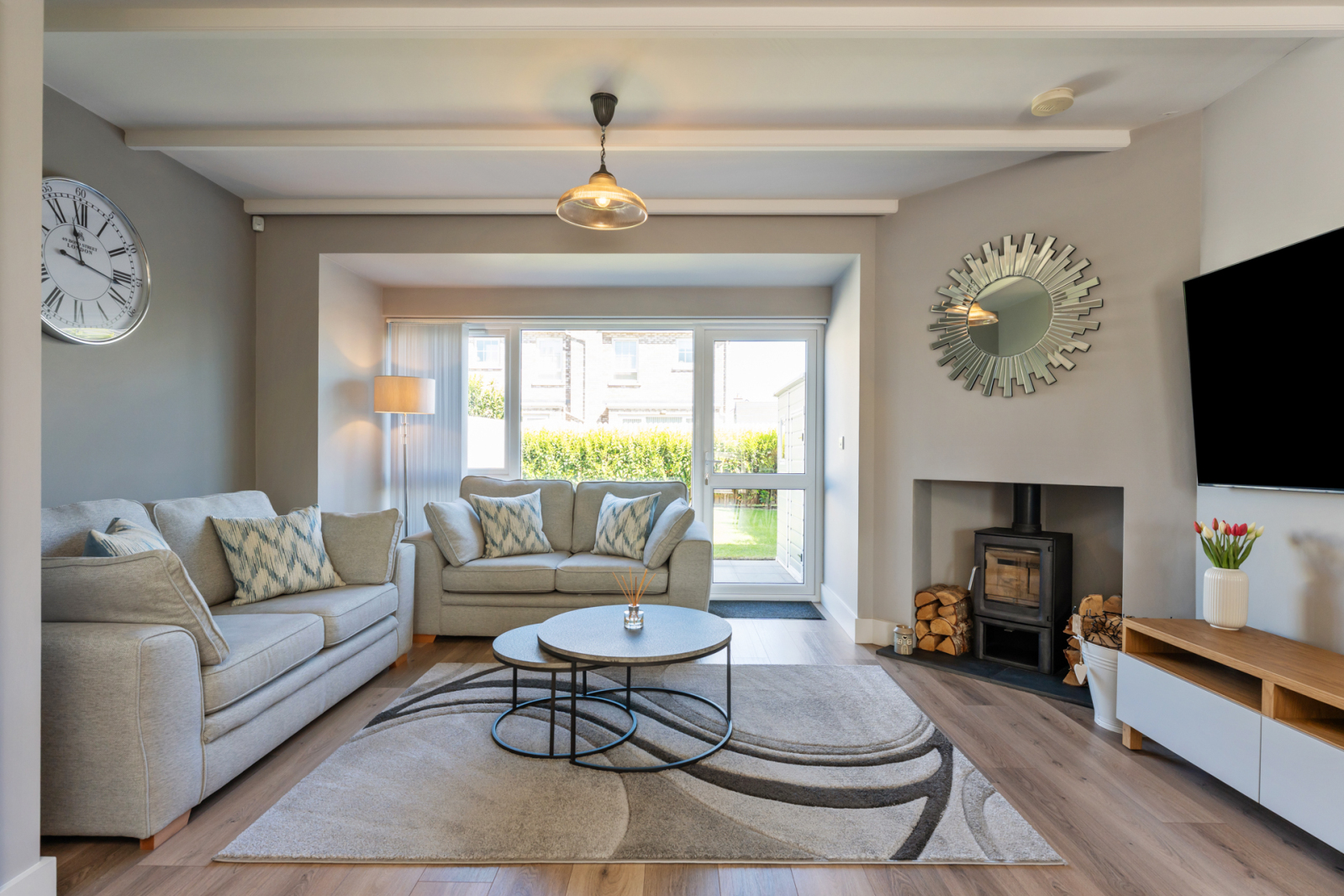 The accommodation briefly comprises of; entrance hall, all important downstairs cloakroom, a large open plan lounge/ dining space with feature stove and further open to a well-appointed modern kitchen - Shaker style units and full range of integrated appliances. Also on the ground floor, there is a very handy utility store.