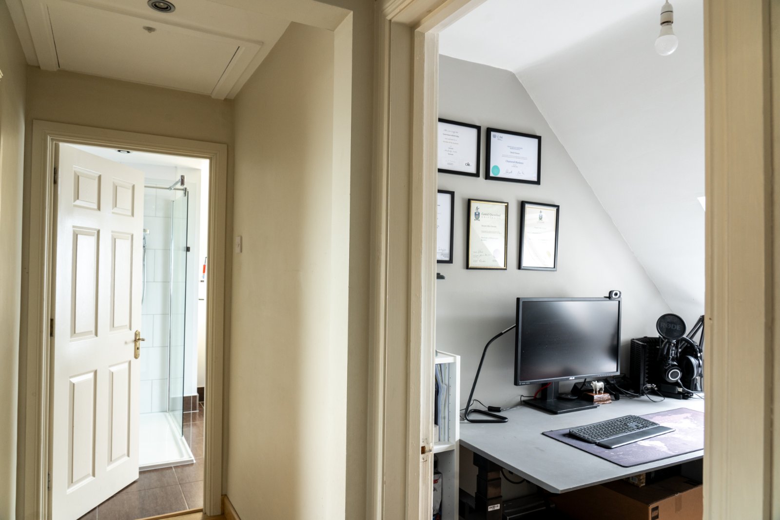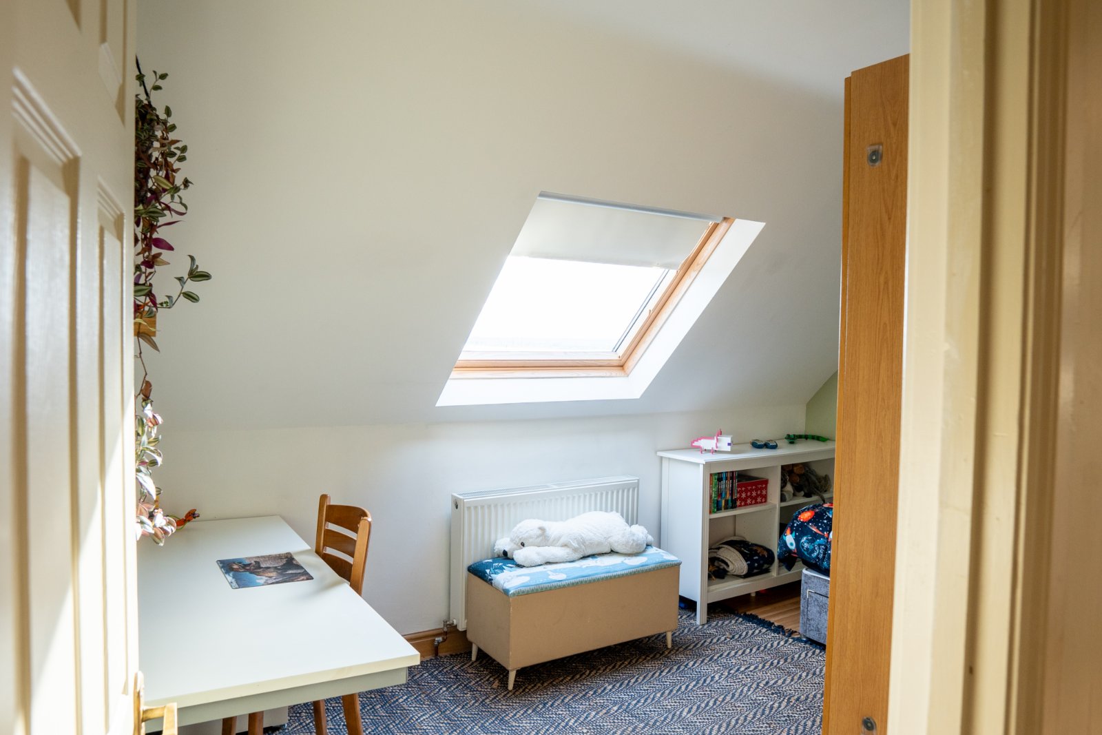 Ideal for casual TV area or reading nook, durable oak effect floor, wall light points, velux window, LED recessed spotlighting.