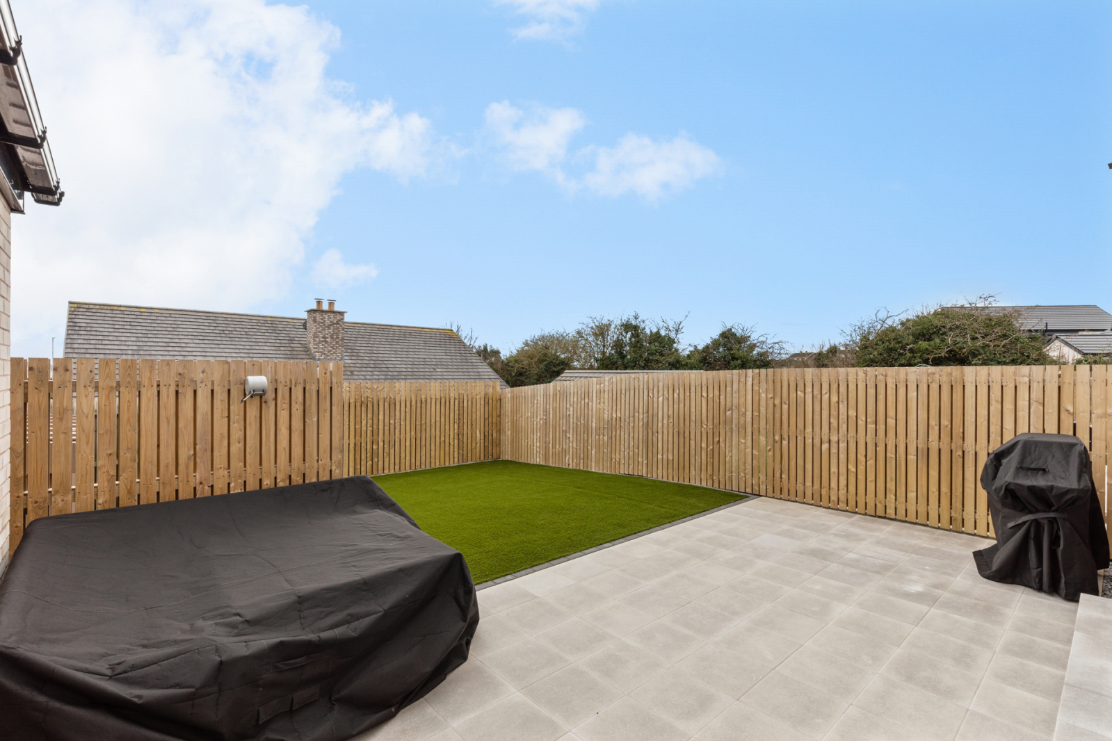 Charging point (wiring), outside light, outside tap, outside plug. Gardens to front with lawn, to the rear of garden has artificial grass, large modern paved path and patio area, 6ft fence, access gate to side. Tarmac drive for four vehicles and solar panels.