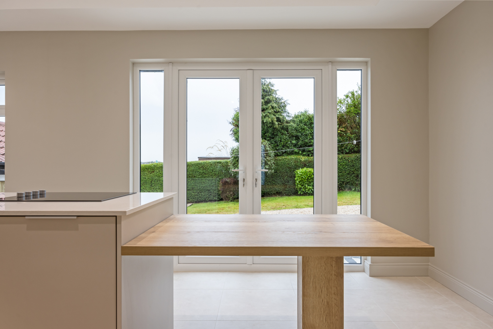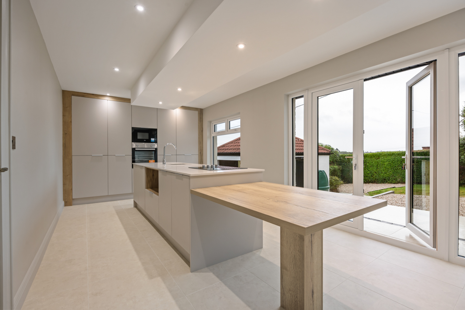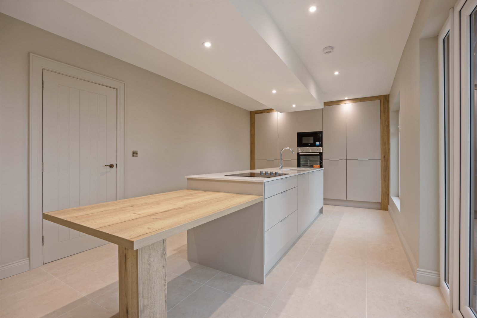 Fantastic range of high and low level units, cortes worksurface with sink unit and drainer 1 tub, mixer tap, integrated fridge freezer, integrated oven, integrated microwave above, integrated washing machine, island unit with cortes work surface, four ring electric hob, integrated dishwasher, recessed spotlighting, tiled flooring, uPVC double doors leading through out to rear garden, breakfast bar for casual dining.