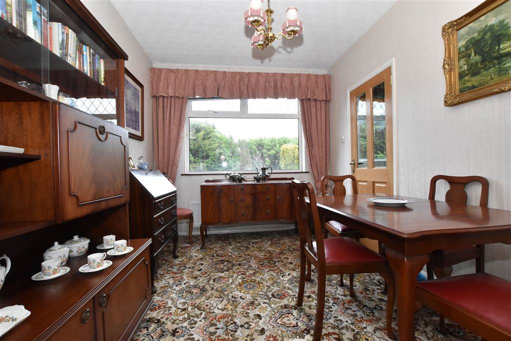 Double aspect room with two different areas. The living area overlooks the front garden and has a feature stone fireplace currently housing an electric fire. There is a partially glazed door through to the hallway. The dining area overlooks the rear garden and there is a door through to the kitchen.