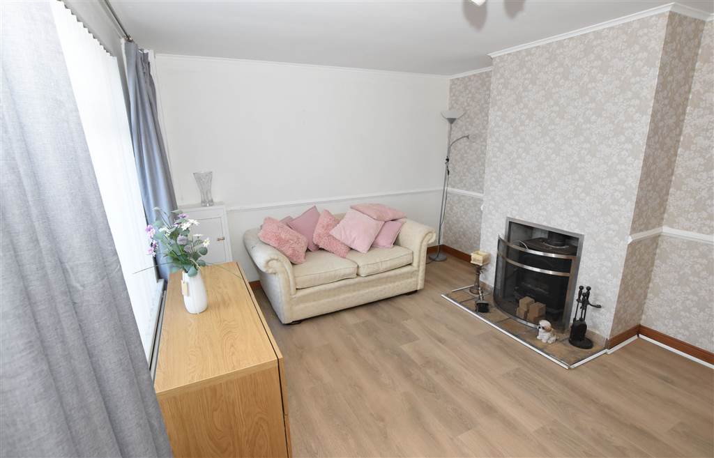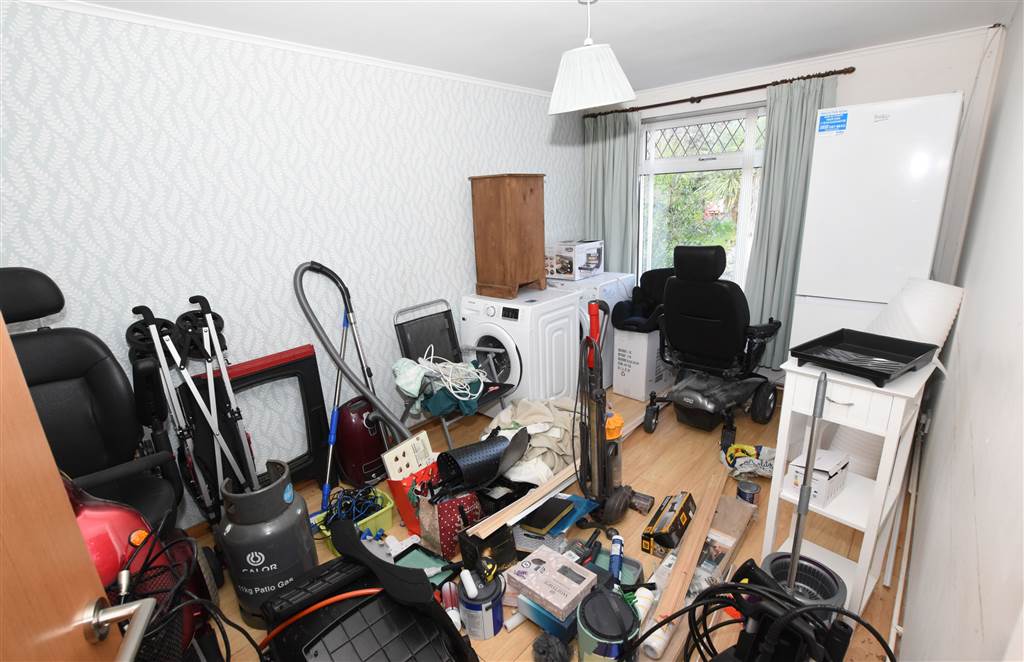Good sized kitchen with a selection of high and low level fitted units including some display units. There are spaces for the fridge freezer, cooker, drier, and plumbing for a washing machine. The walls are partially tiled and the floor is tiled. The upvc door leads out to the rear garden.