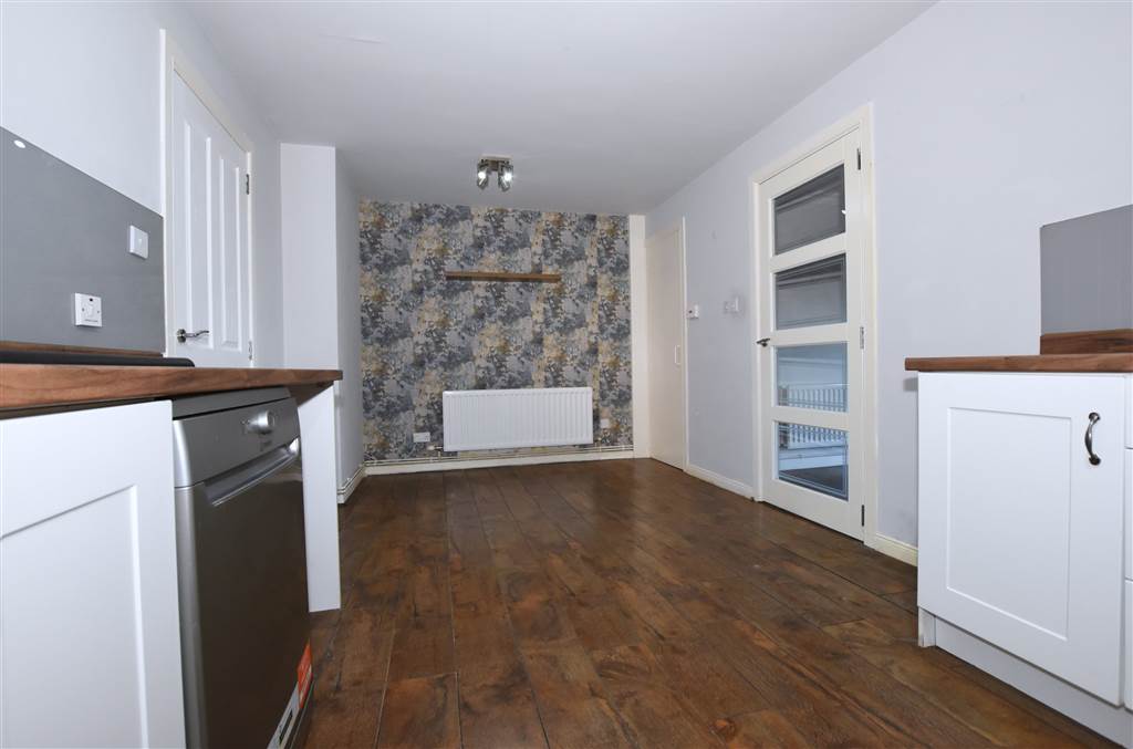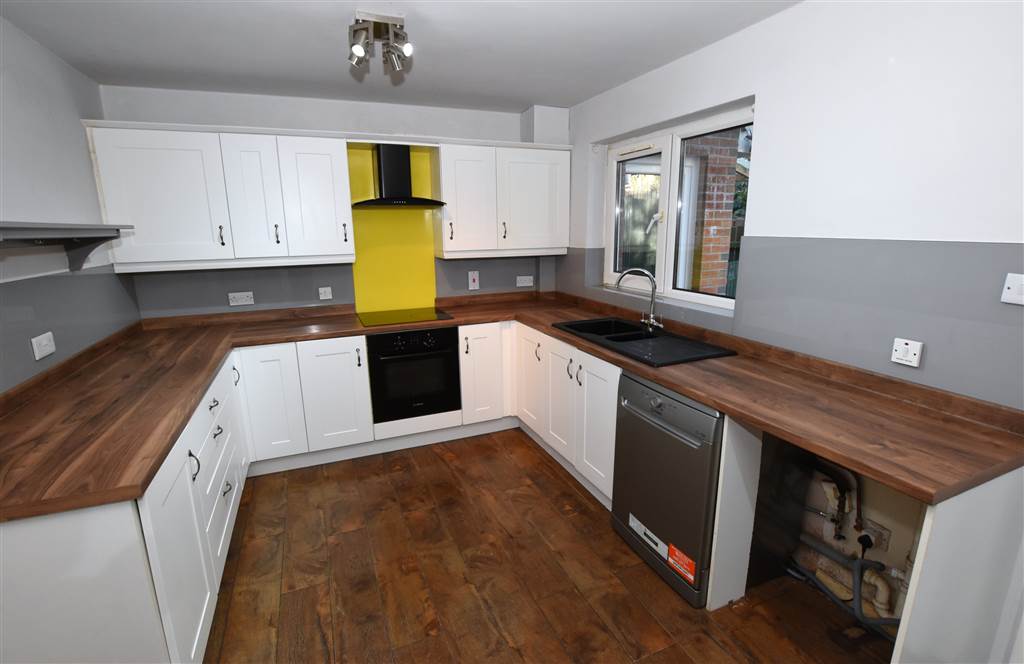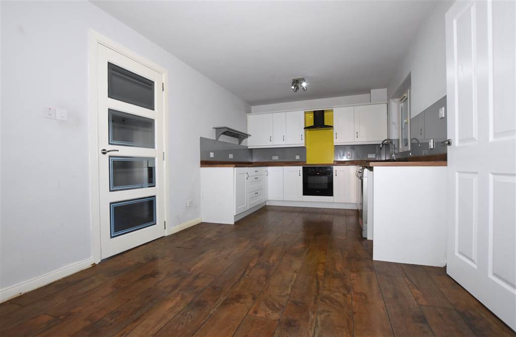 Beautiful kitchen/ diner with storage cupboard. There is a ceramic hob, integrated oven and extractor fan. The one and a half sink with drainer is complimented by a chrome mixer tap. There is a great selection of high and low level cupboards with a dishwasher, plumbing for a washing machine and spotlights on the ceiling. IN the dining area there is plenty of room for a dining table and chairs.