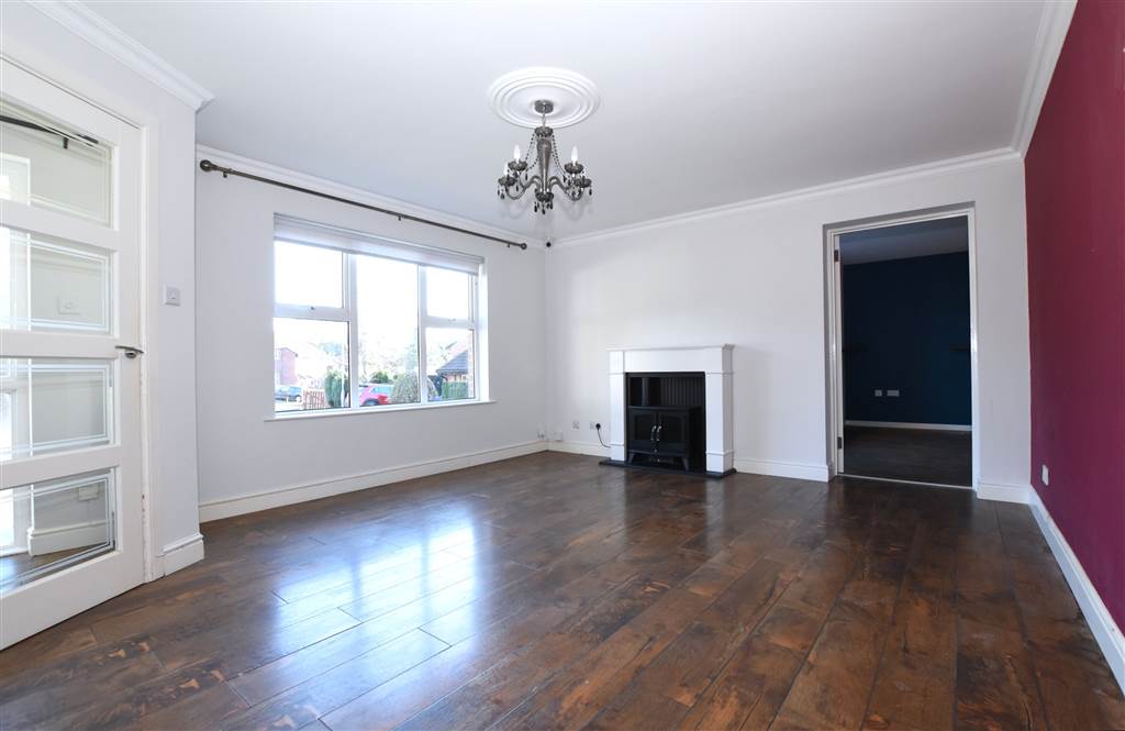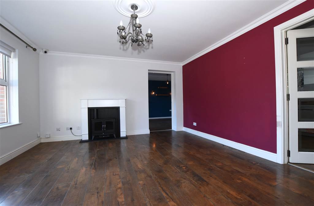 Great sized living room with electric fire currently installed and feature fireplace. View to the front of the property. Laminate flooring and a cornice on the ceiling with centre piece ceiling rose and ornate light.